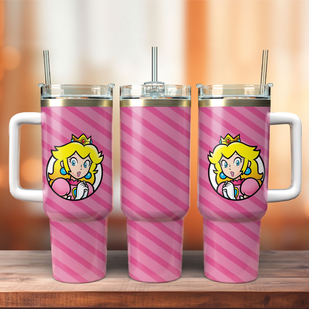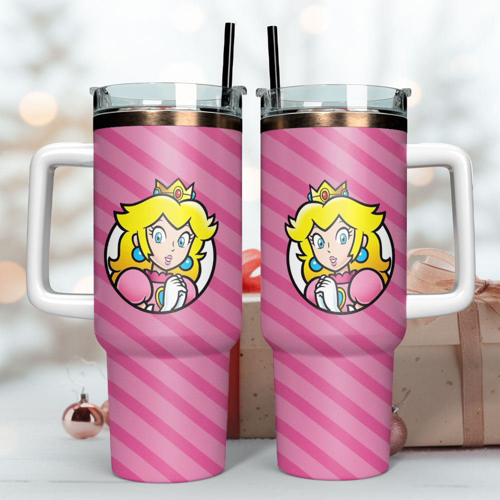 Princess Peach Super Mario Custom Stanley Quencher 40Oz Stainless Steel Tumbler With Handle