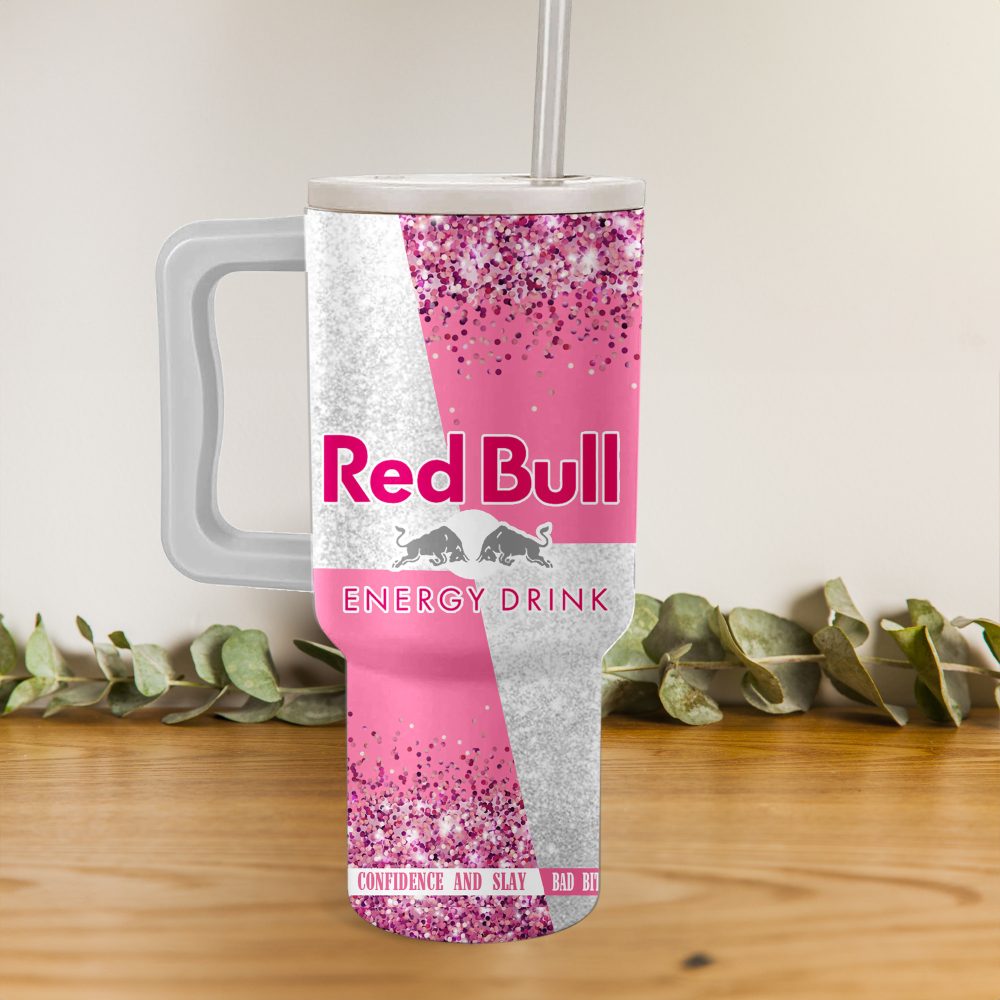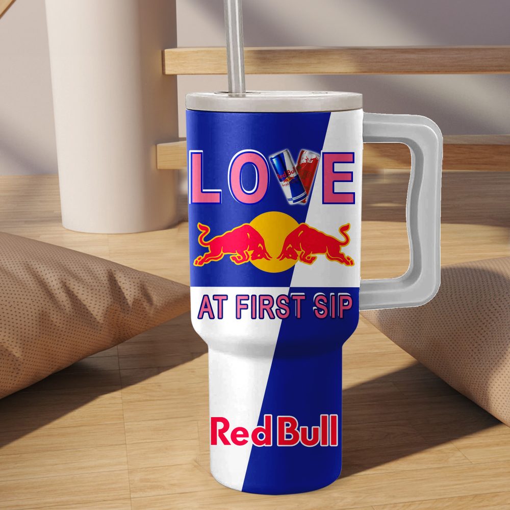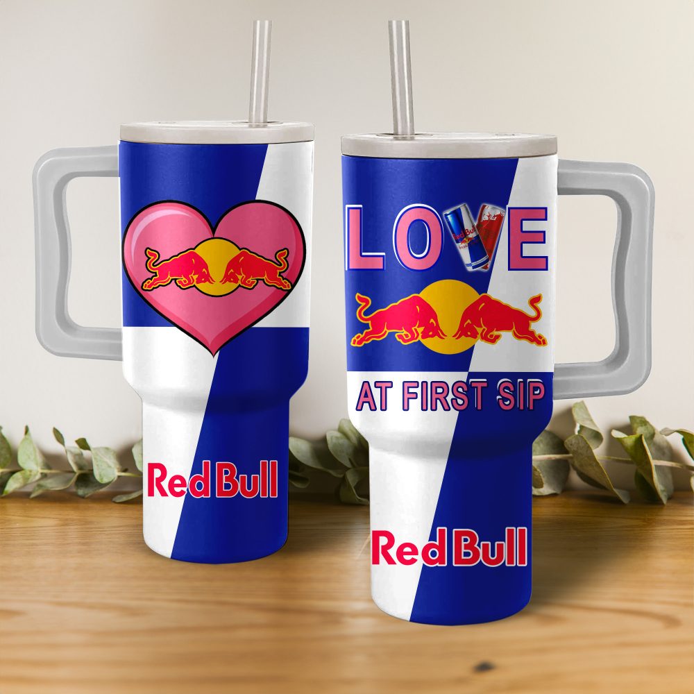Red Bull Love At First Sip Custom Stanley Quencher 40Oz Stainless Steel Tumbler With Handle