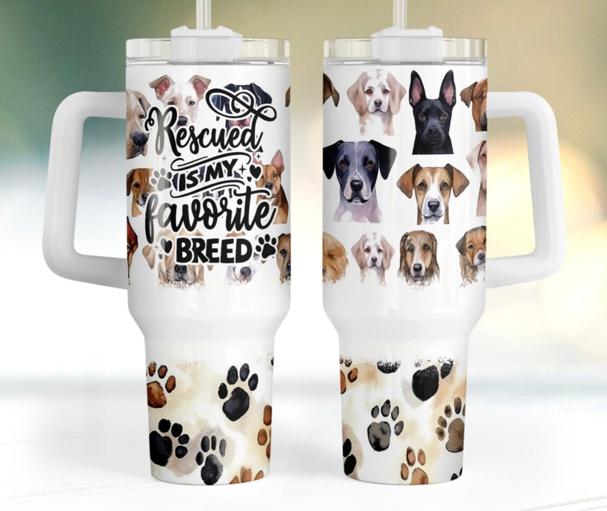 Rescued Dog Custom Stanley Quencher 40Oz Stainless Steel Tumbler With Handle