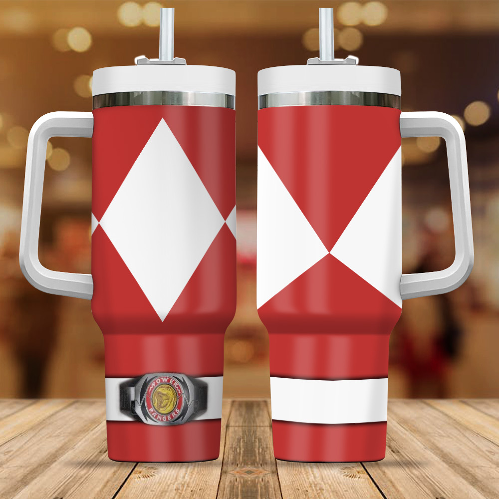 Red Mighty Morphin Power Rangers Movies Custom Stanley Quencher 40Oz Stainless Steel Tumbler