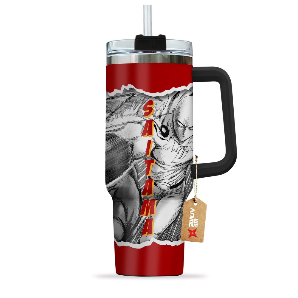 Saitama One-Punch Man Anime Custom Stanley Quencher 40Oz Stainless Steel Tumbler With Handle
