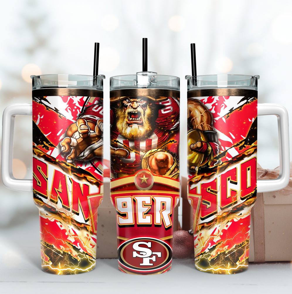 San Francisco 49Ers Nfl Mascot Custom Stanley Quencher 40Oz Stainless Steel Tumbler With Handle