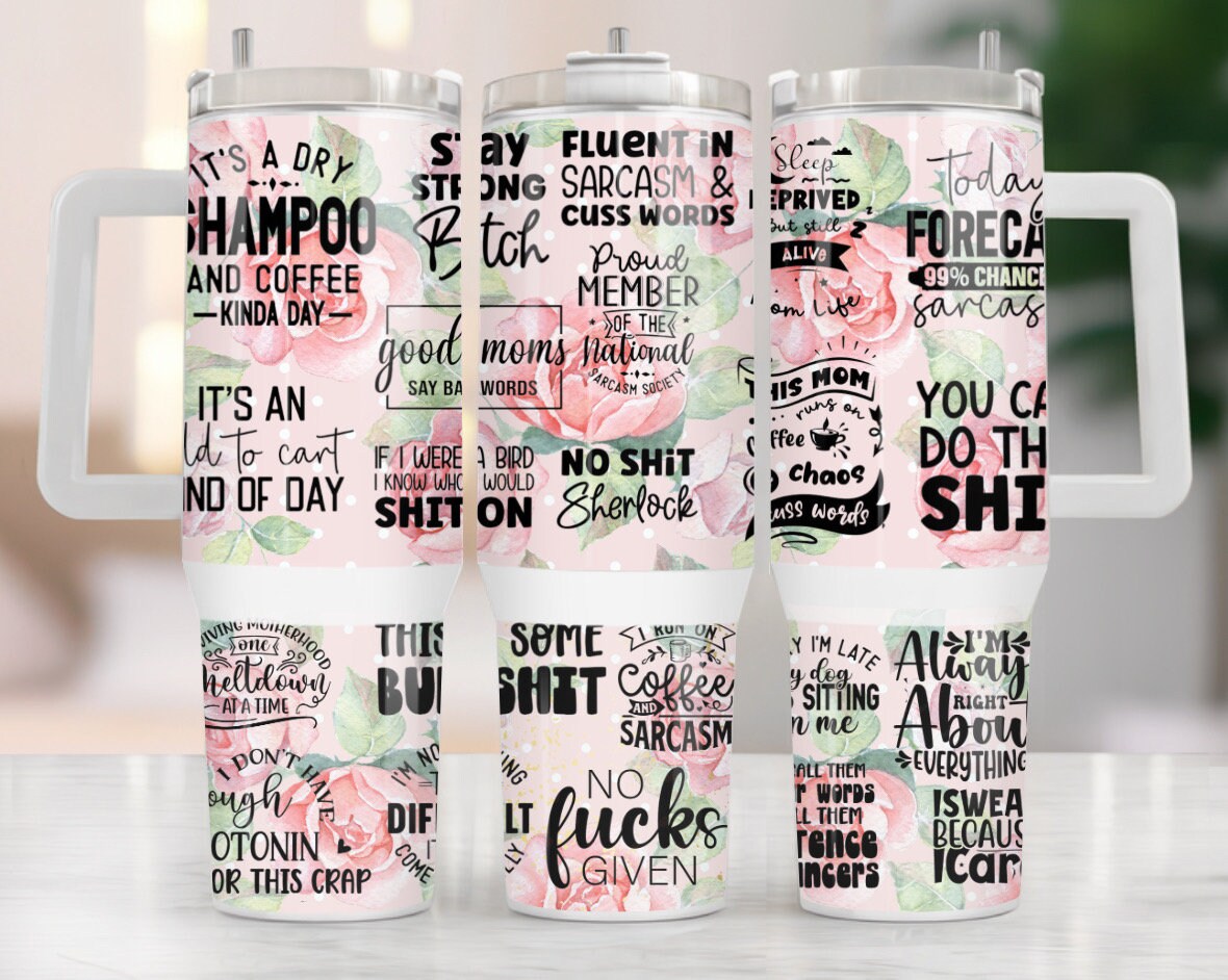 Sarcastic Quotes Floral Custom Stanley Quencher 40Oz Stainless Steel Tumbler With Handle