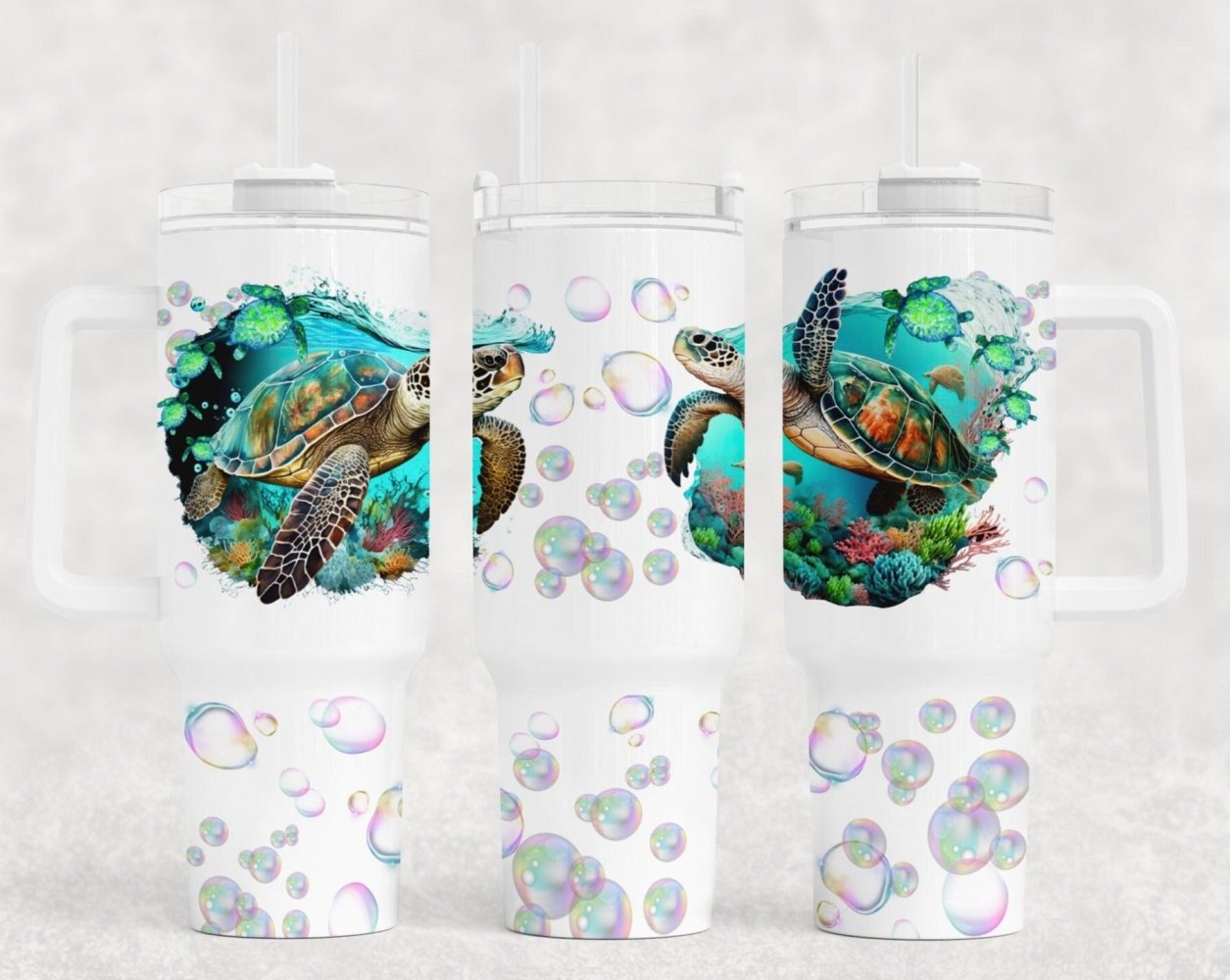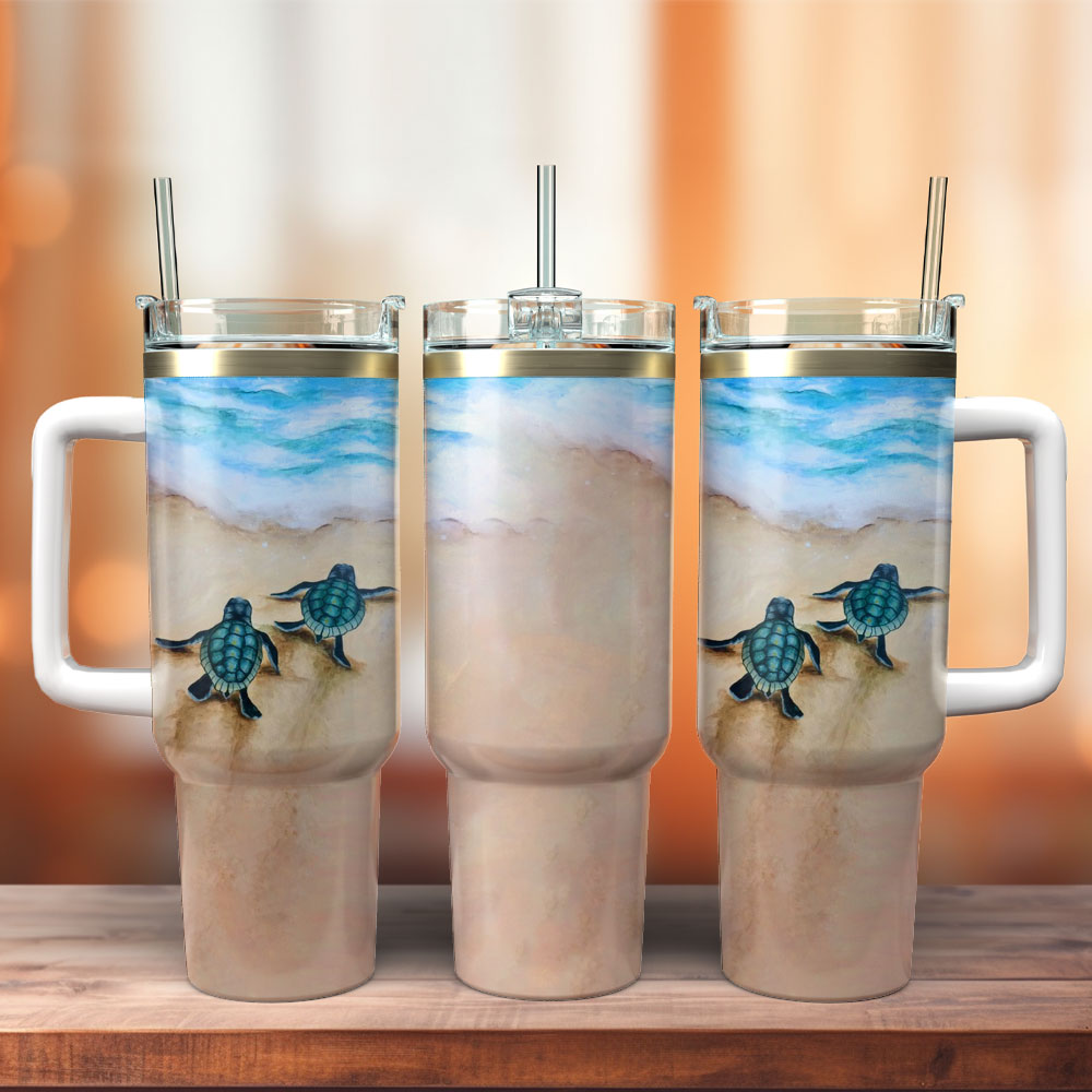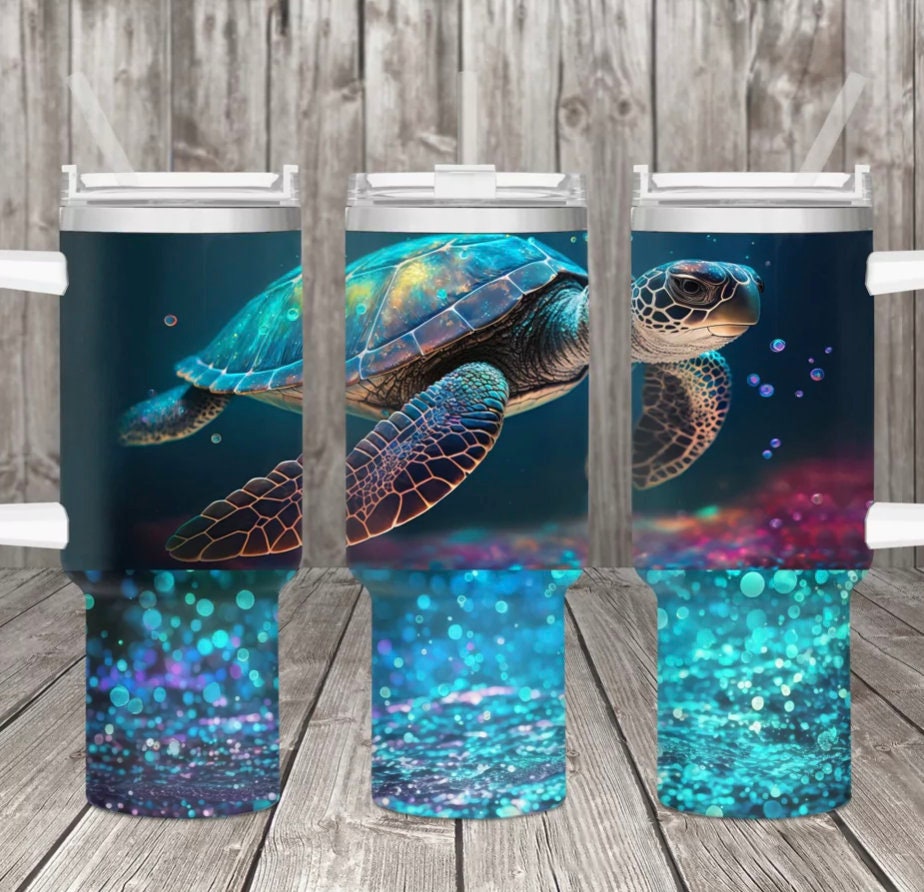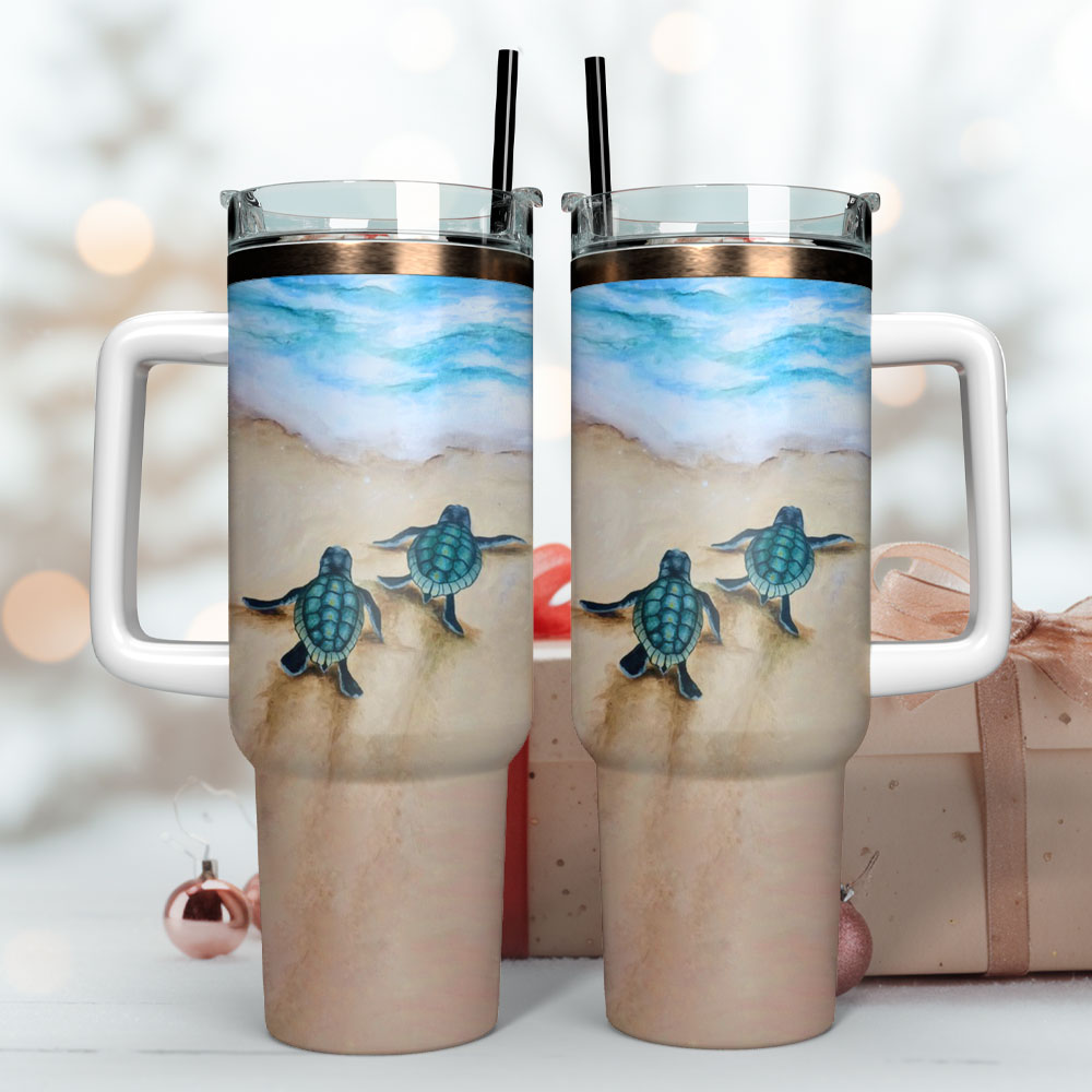 Sea Turtle Artwork Custom Stanley Quencher 40Oz Stainless Steel Tumbler With Handle