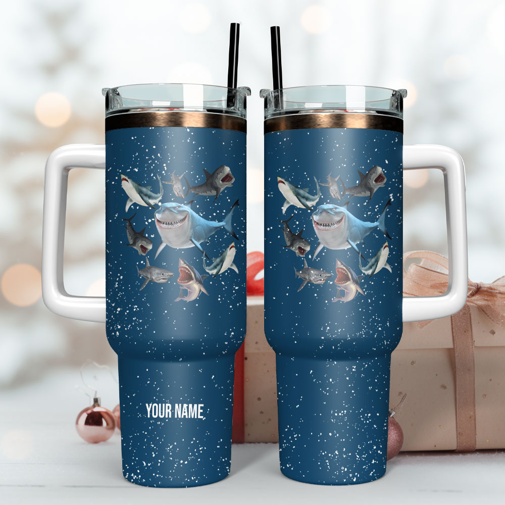 Shark Artwork Custom Stanley Quencher 40Oz Stainless Steel Tumbler With Handle