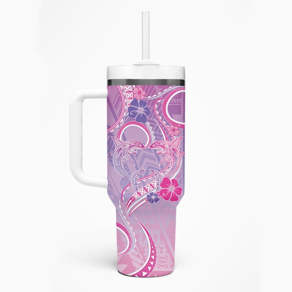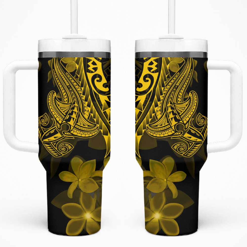Shark Tattoo And Plumeria Custom Stanley Quencher 40Oz Stainless Steel Tumbler