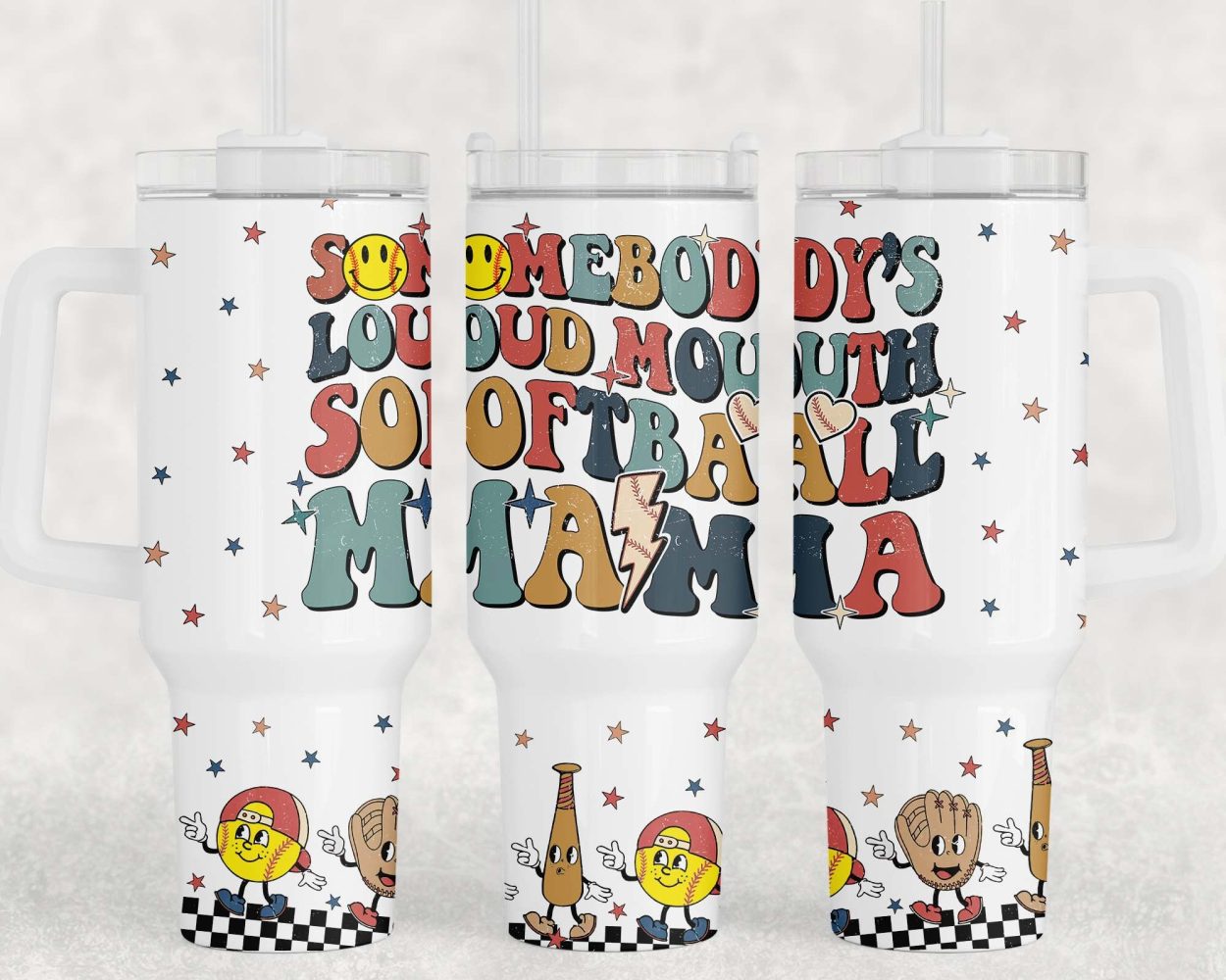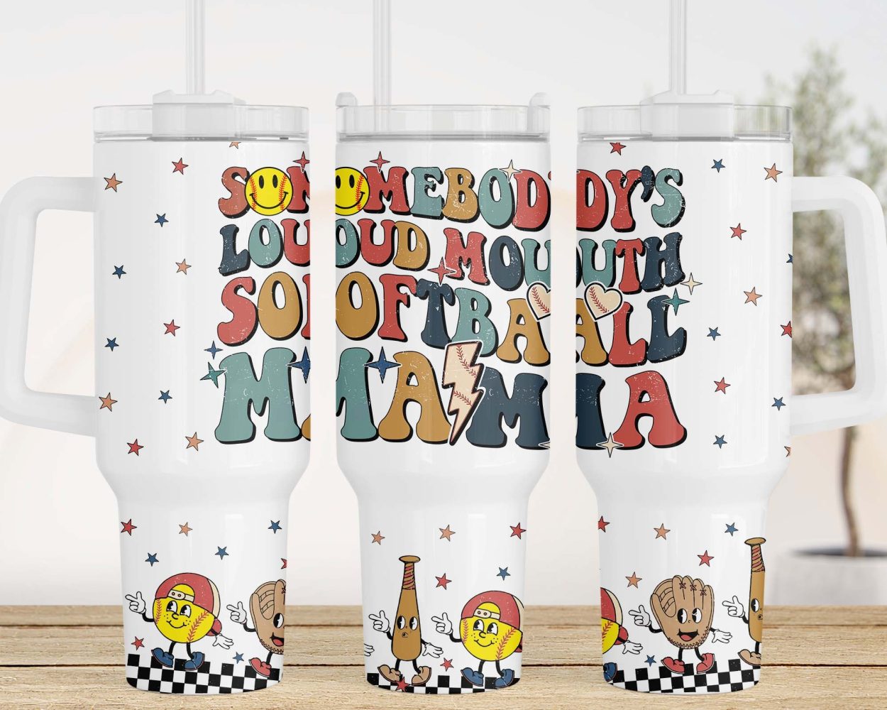 Softball Mama Custom Stanley Quencher 40Oz Stainless Steel Tumbler With Handle