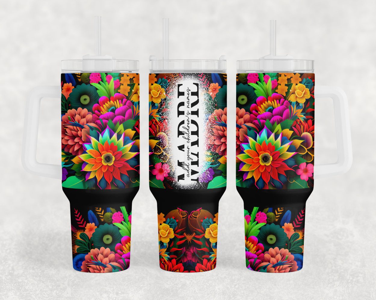 Spanish Mom Colorful Flowers Custom Stanley Quencher 40Oz Stainless Steel Tumbler With Handle