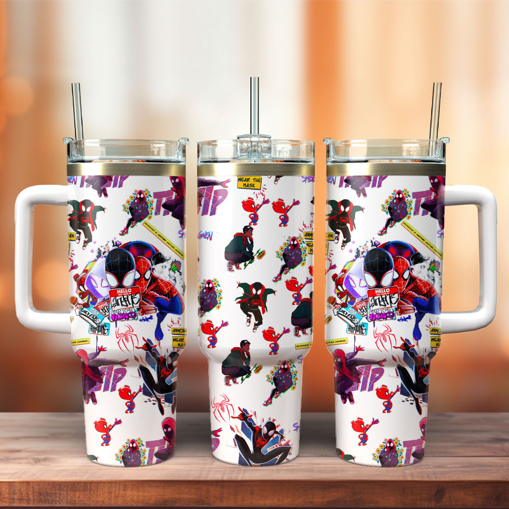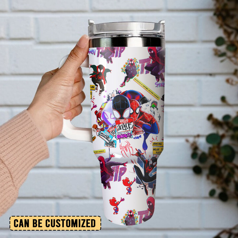 Spider Man Into The Spider Movie Custom Stanley Quencher 40Oz Stainless Steel Tumbler With Handle
