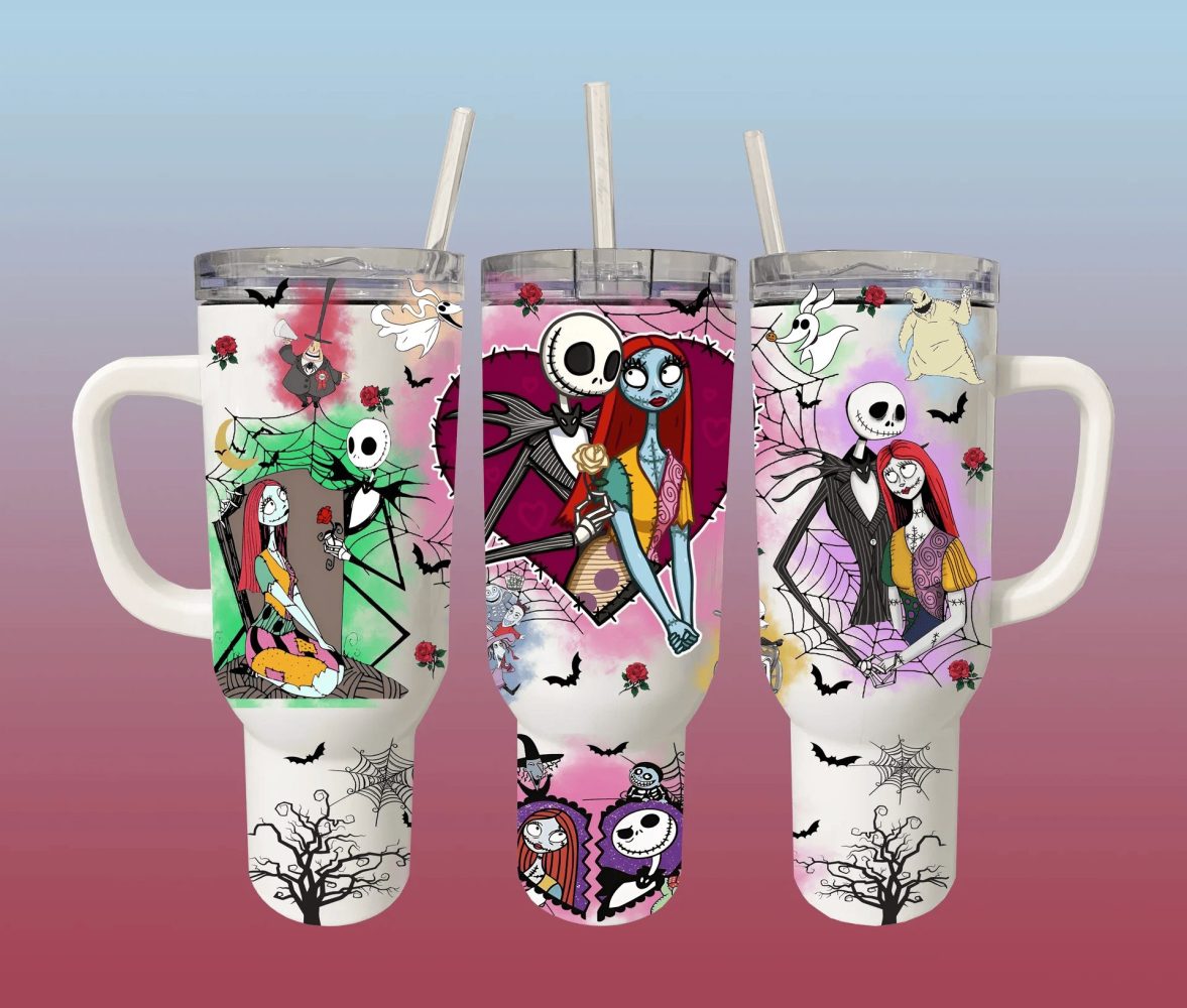 Spooky Black Stanley Tumbler 40Oz Nightmare Before Christmas Halloween Design