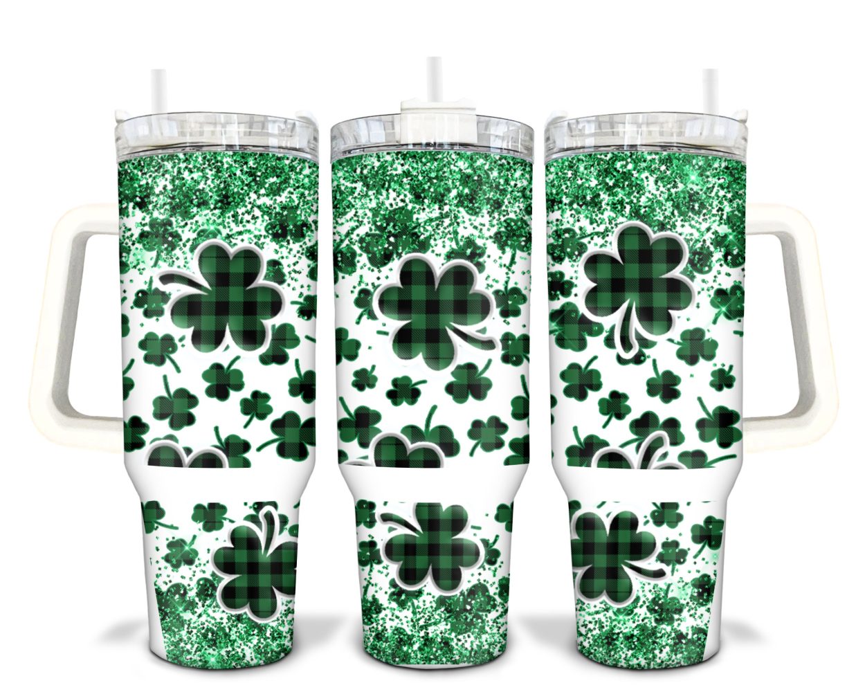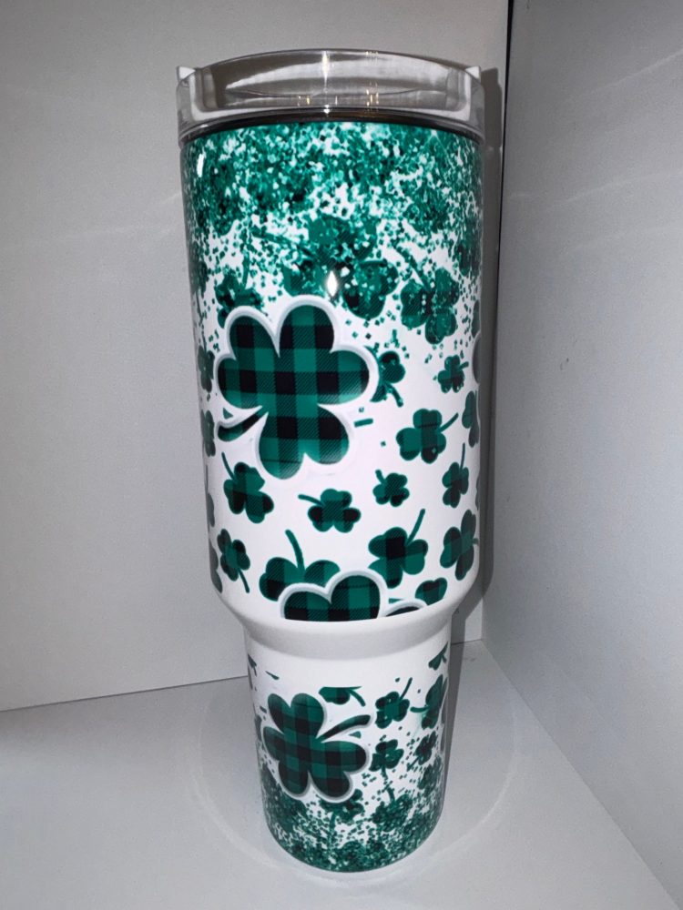 St Patricks Day Lucky Clover Custom Stanley Quencher 40Oz Stainless Steel Tumbler With Handle