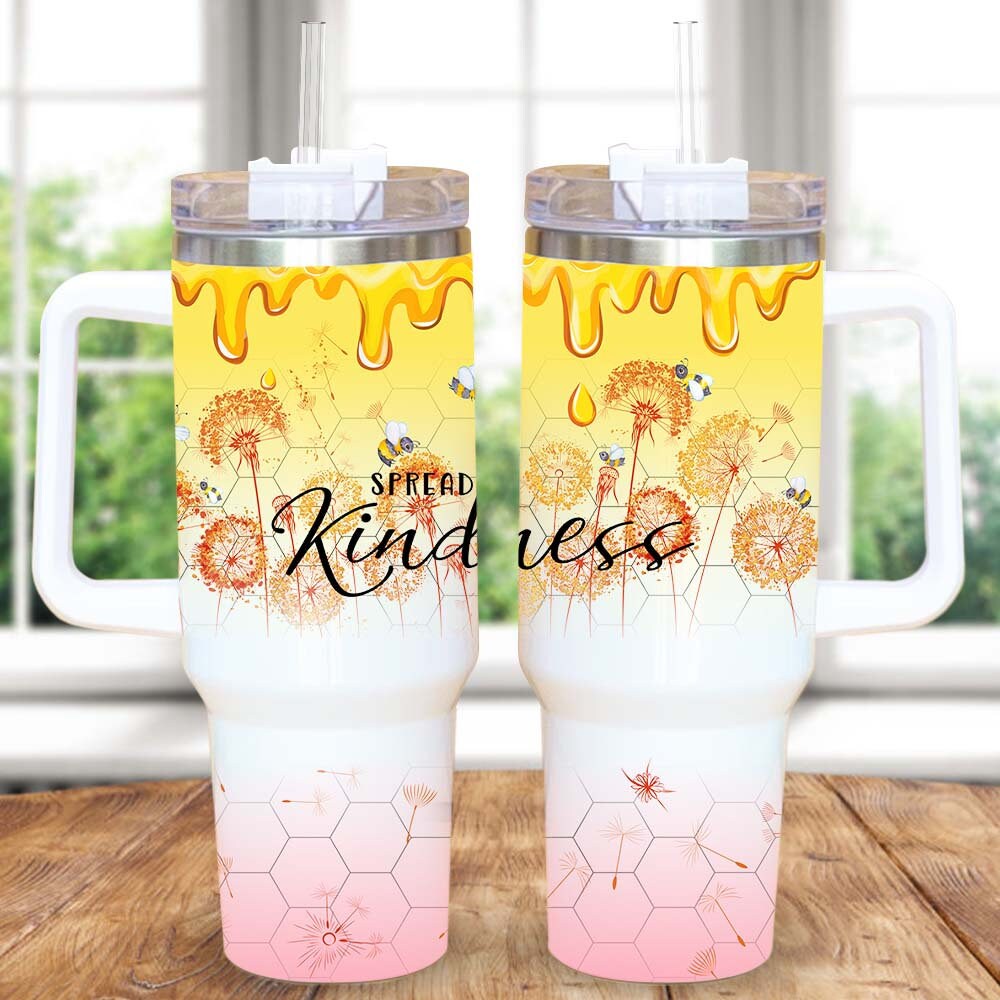 Spread Kindness Dandelion Beehive Custom Stanley Quencher 40Oz Stainless Steel Tumbler With Handle