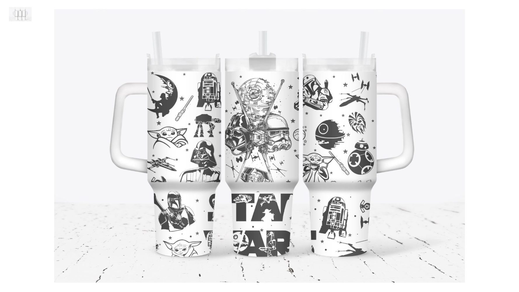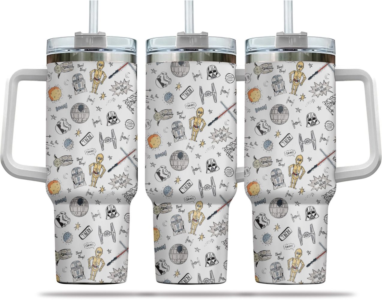 Star Wars Movies Custom Stanley Quencher 40Oz Stainless Steel Tumbler White