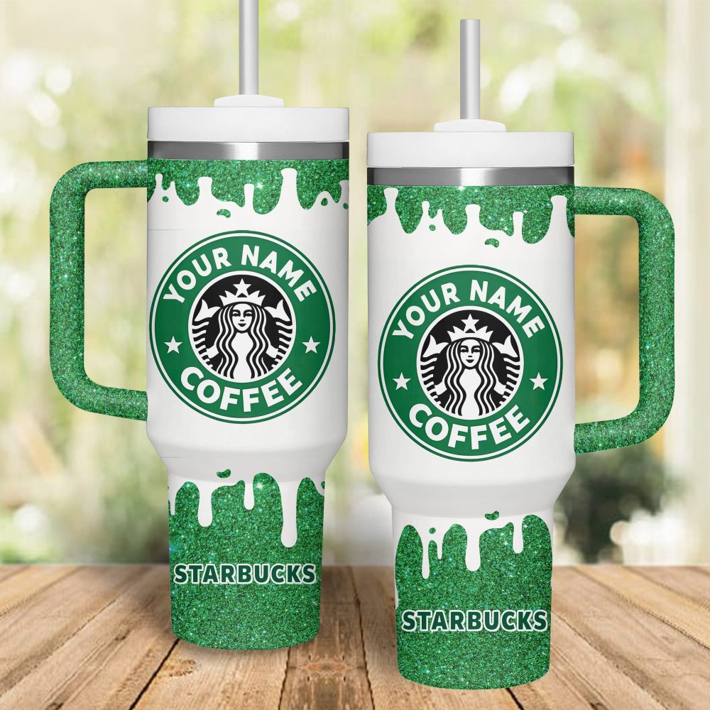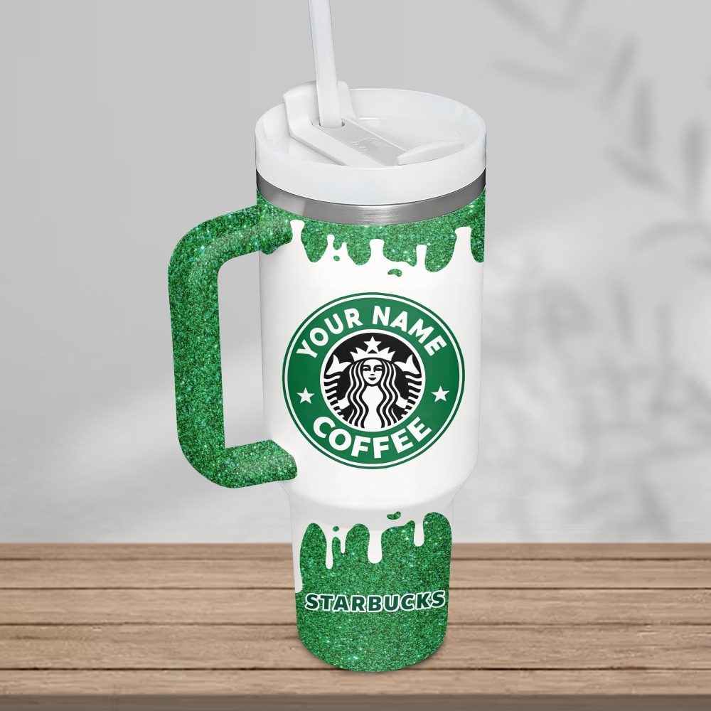 Starbucks Coffee Glitter Custom Stanley Quencher 40Oz Stainless Steel Tumbler With Handle