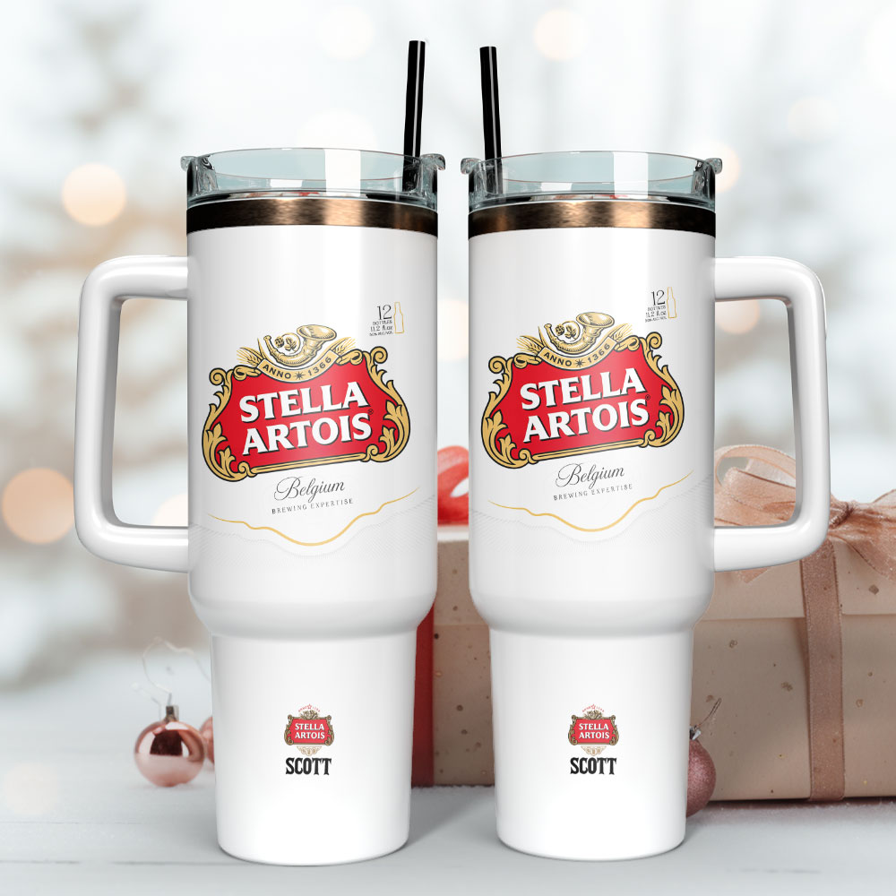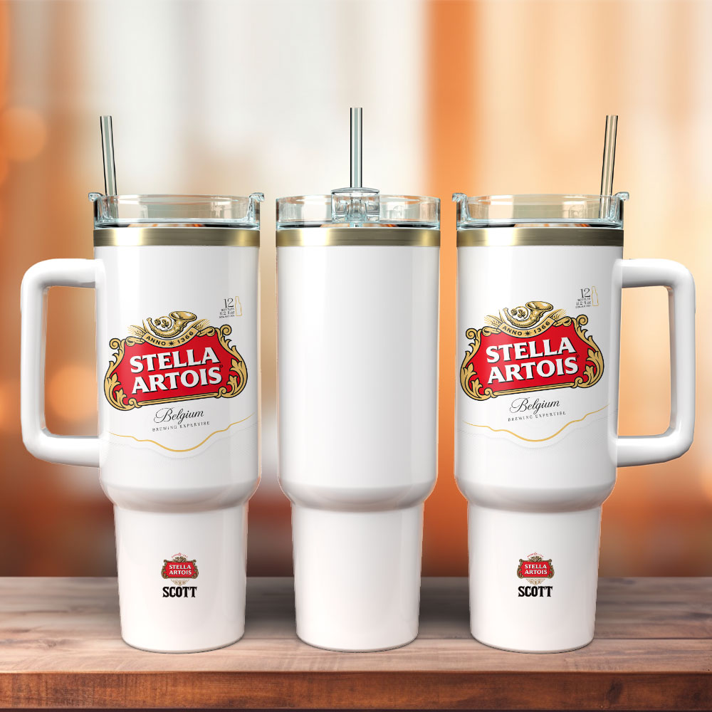 Stella Artois Drink Custom Stanley Quencher 40Oz Stainless Steel Tumbler With Handle