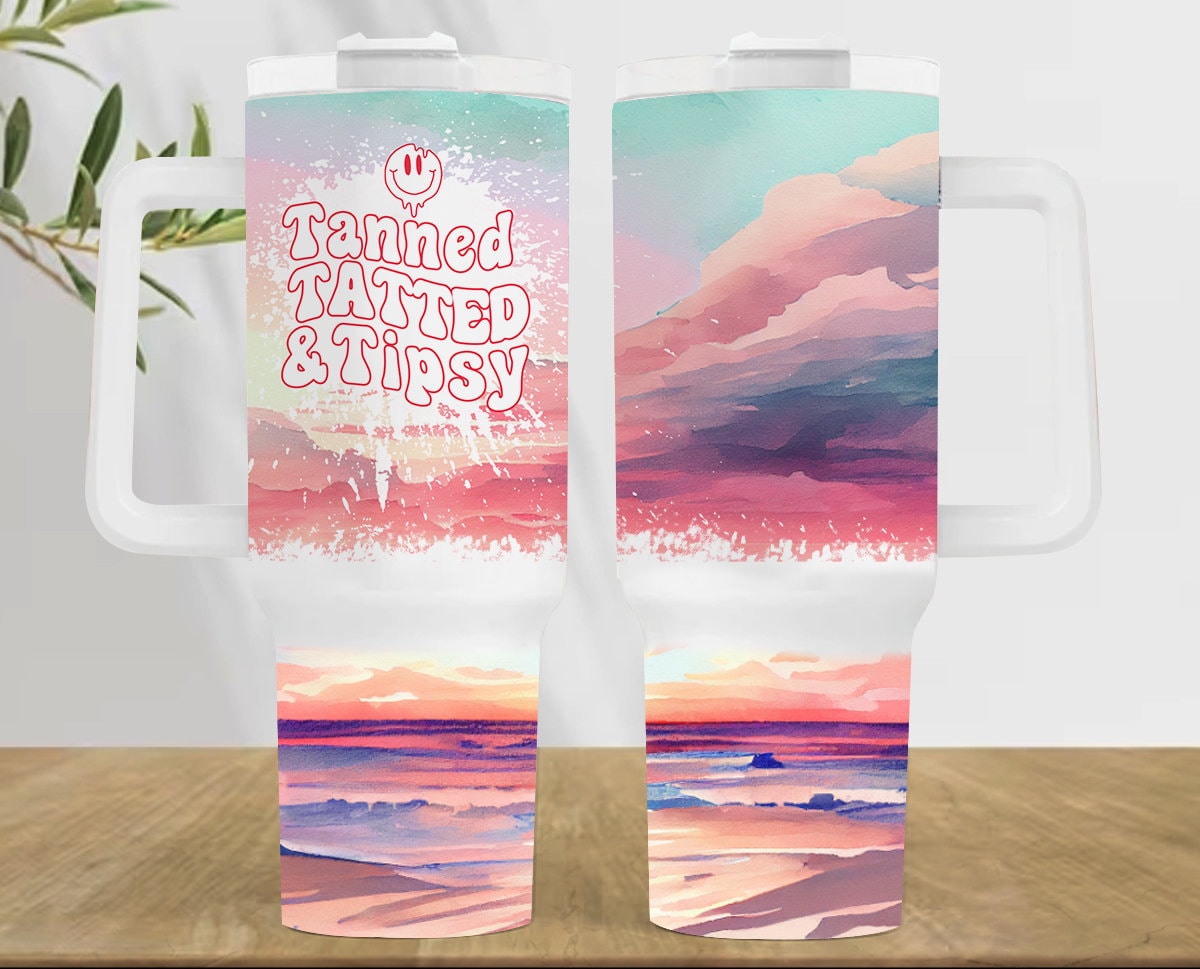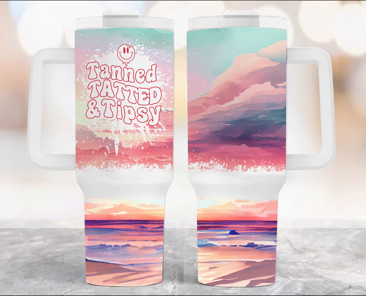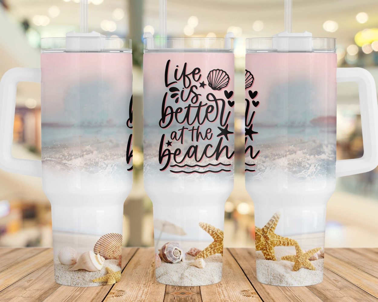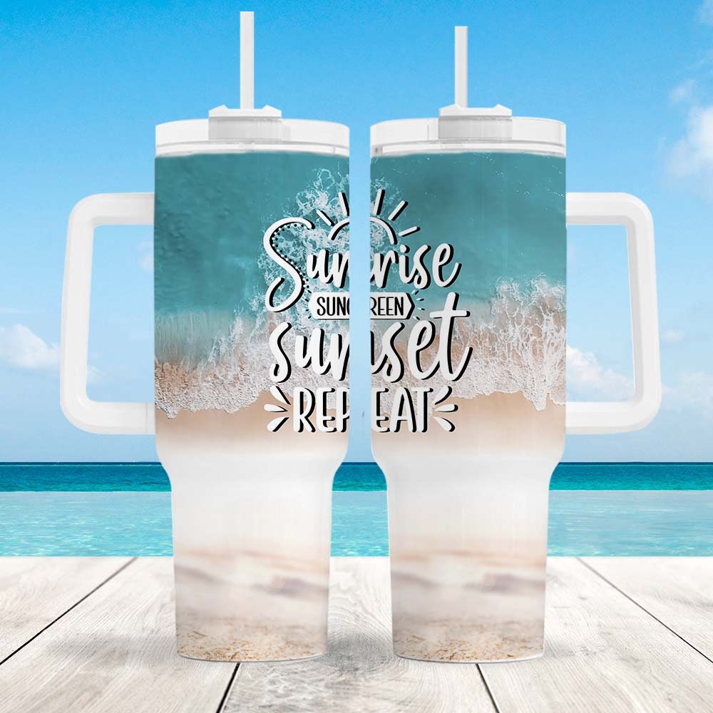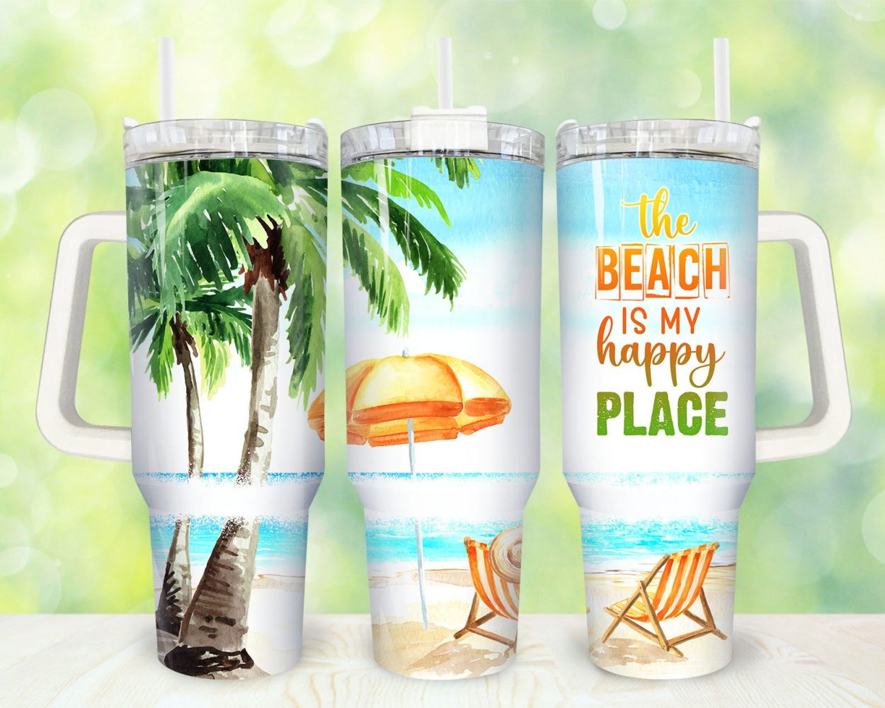 Summer Beach Vibes Custom Stanley Quencher 40Oz Stainless Steel Tumbler With Handle