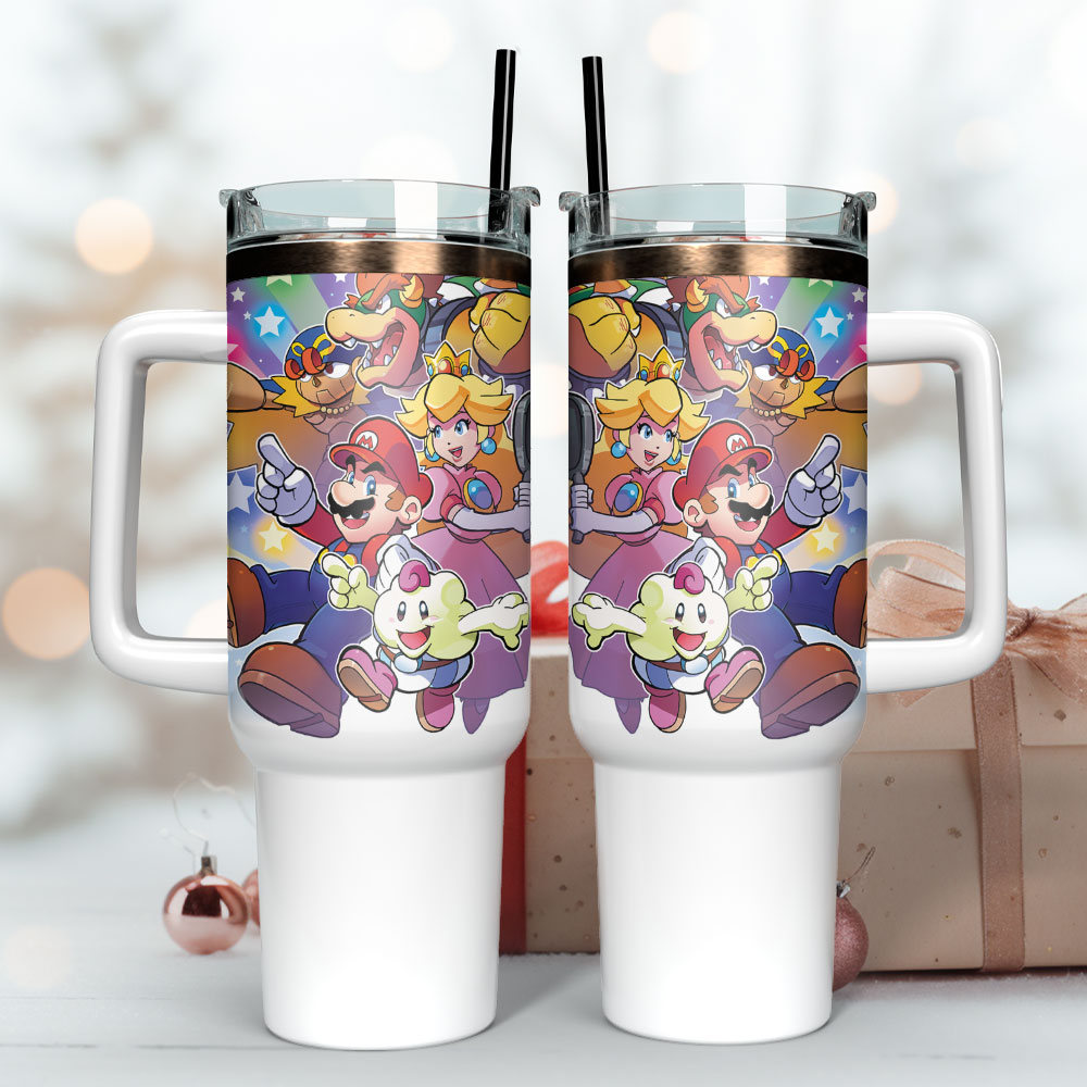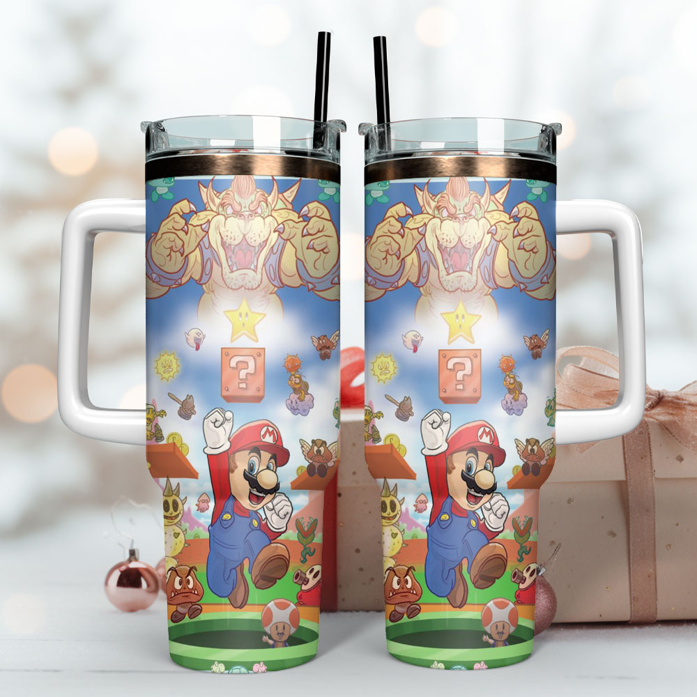 Super Mario Adventure Tumbler With Straw Double Wall Insulated Mug For Gamers 40Oz