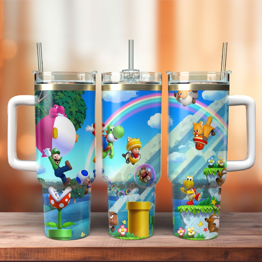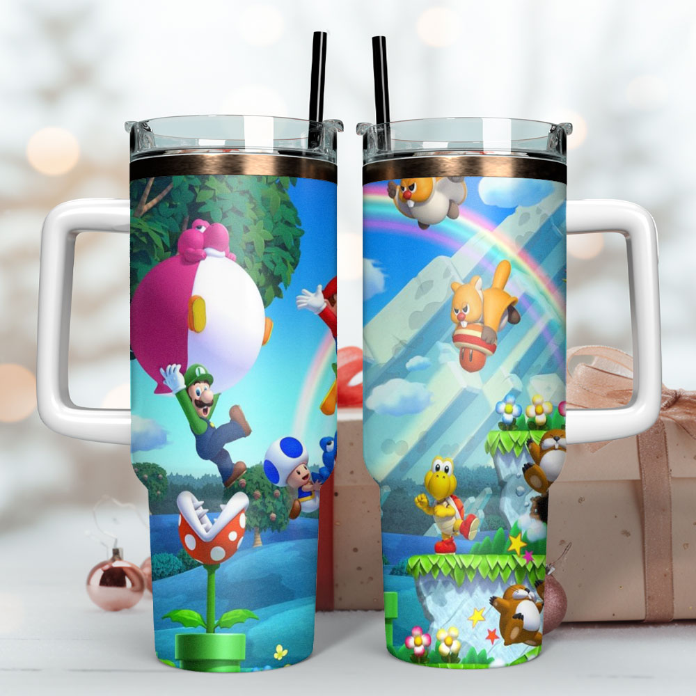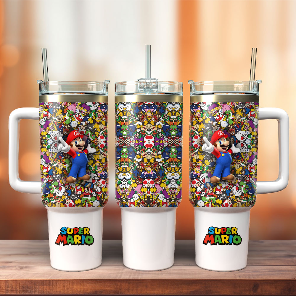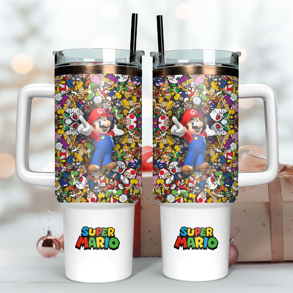 Super Mario Games Custom Stanley Quencher 40Oz Stainless Steel Tumbler