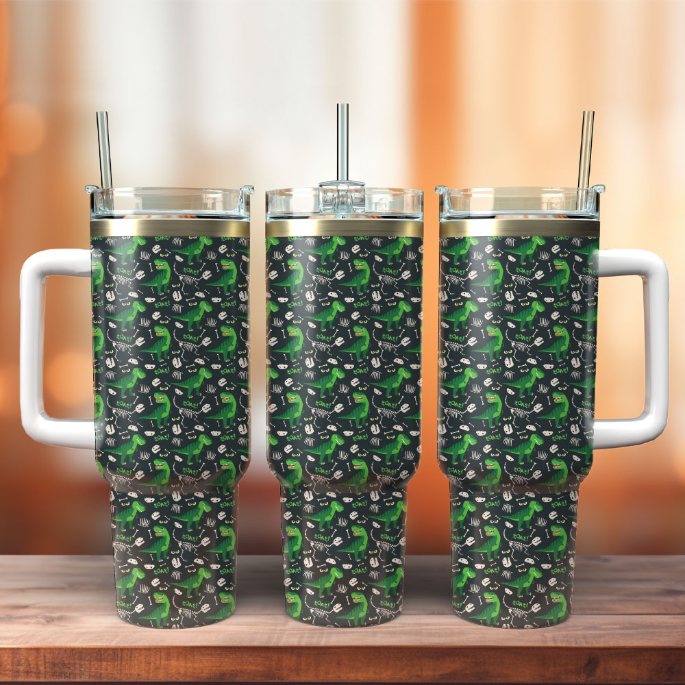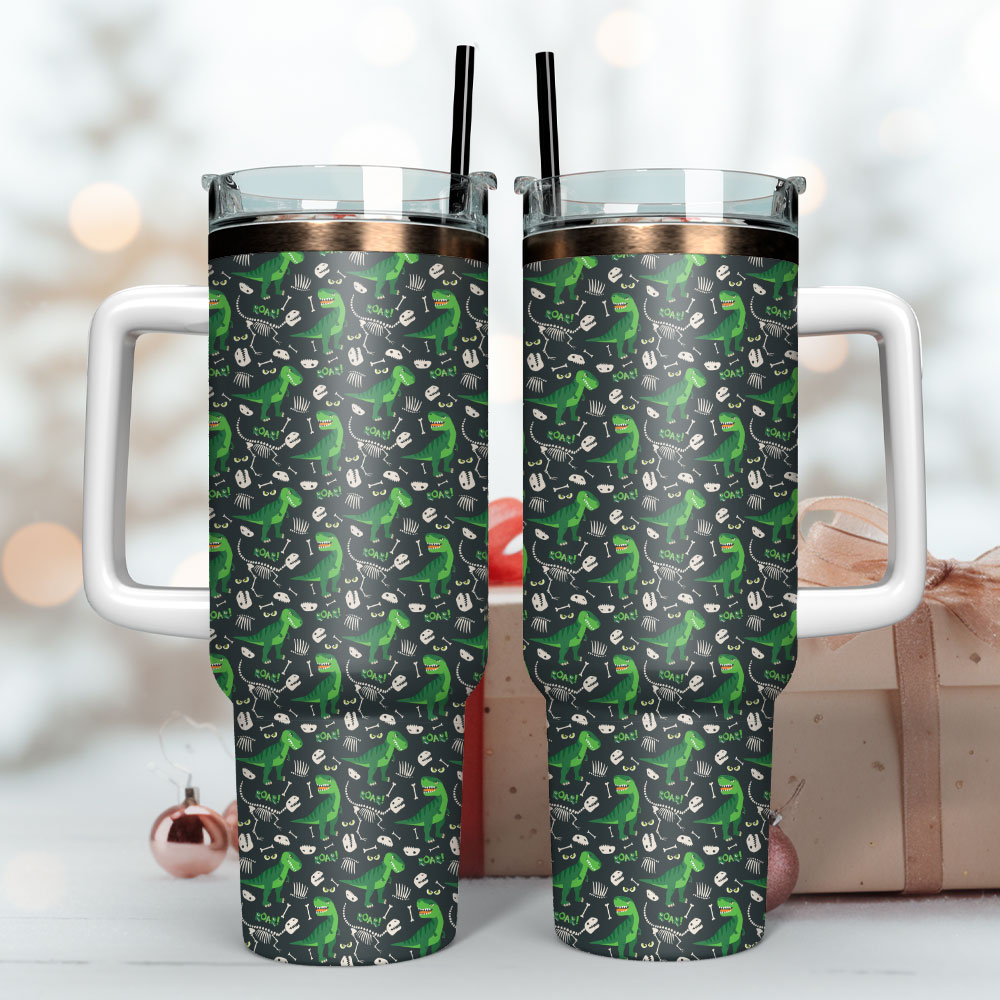T-Rex Dinosaur Pattern Custom Stanley Quencher 40Oz Stainless Steel Tumbler With Handle