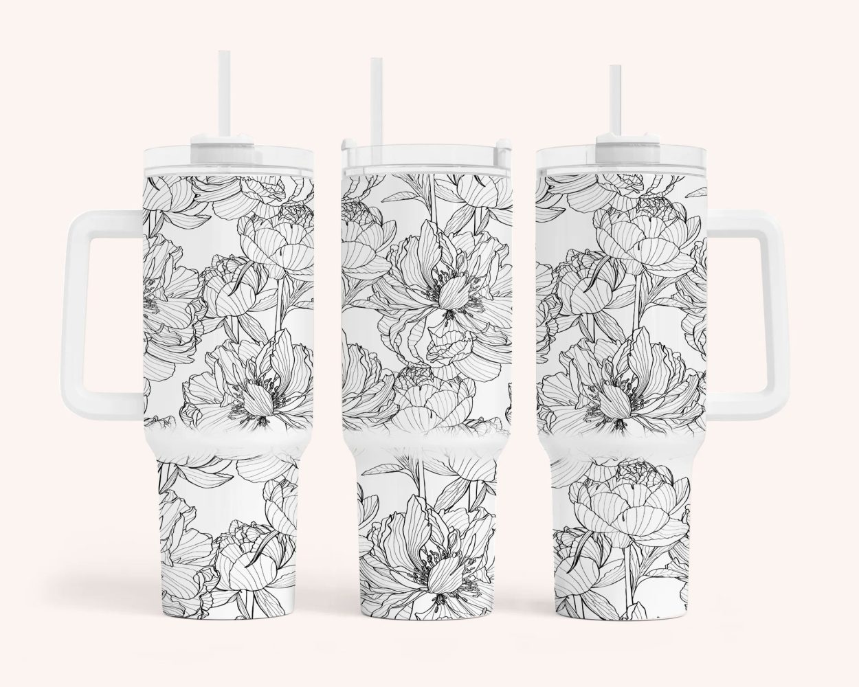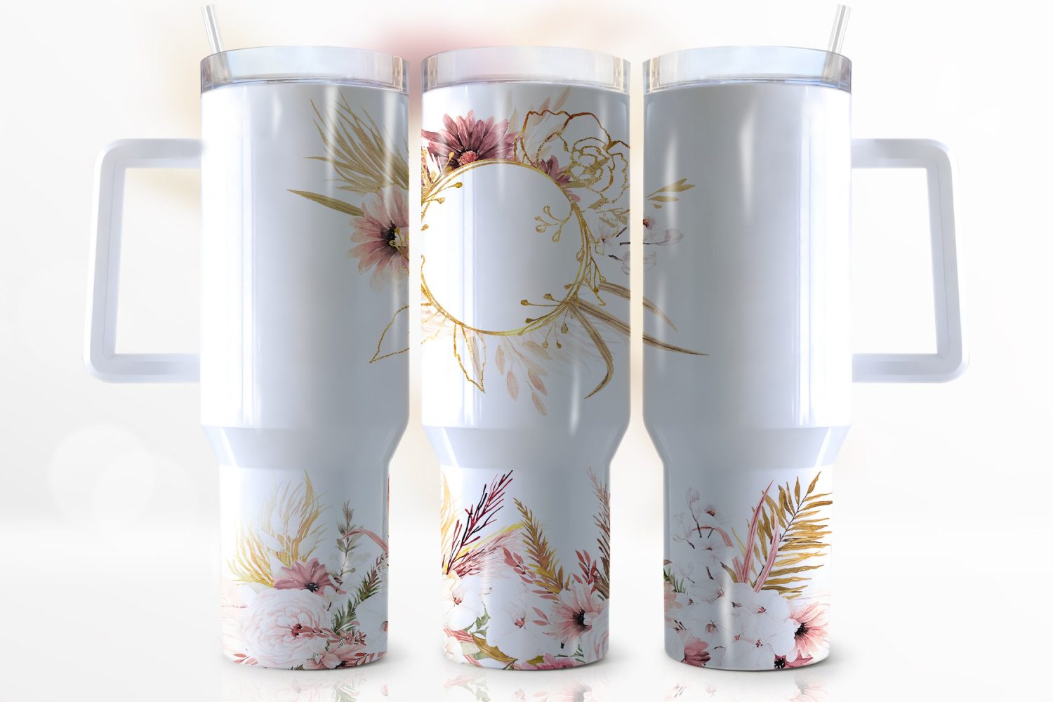 Boho Floral Custom Stanley Quencher 40Oz Stainless Steel Tumbler With Handle