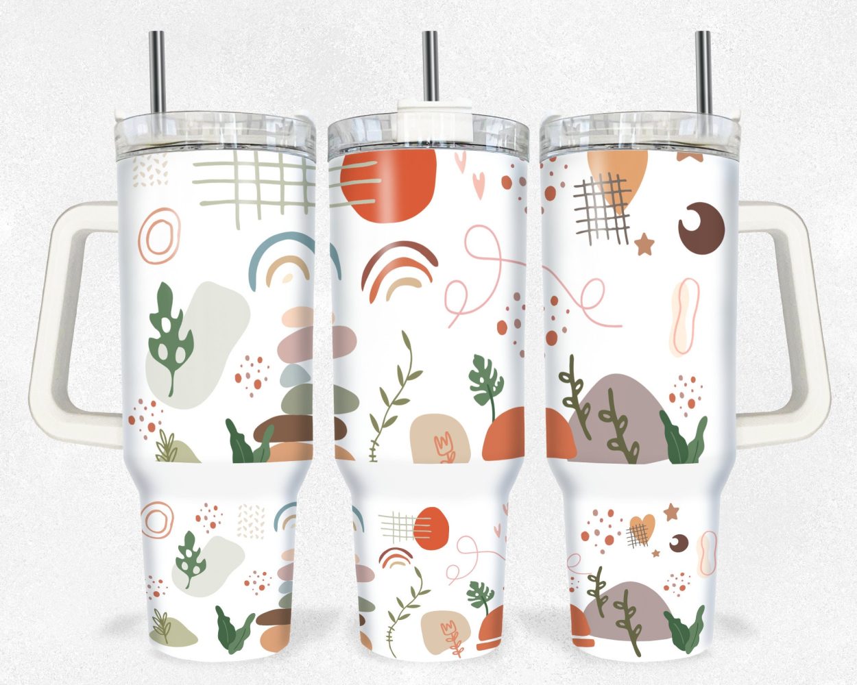 Bohemian Pattern Artwork Custom Stanley Quencher 40Oz Stainless Steel Tumbler With Handle