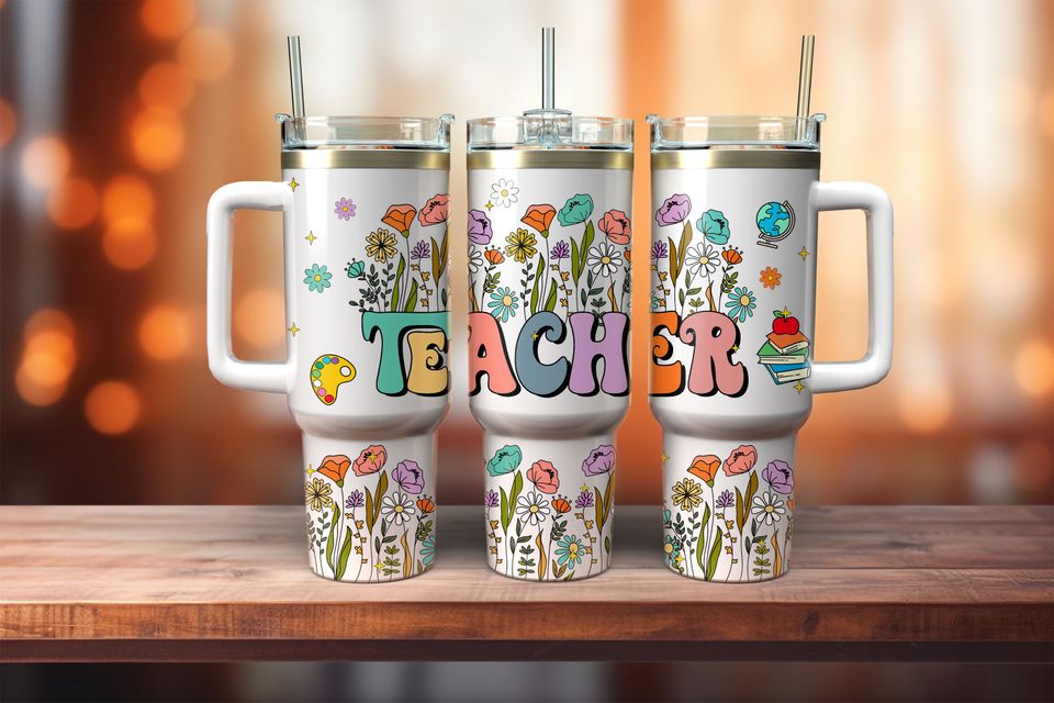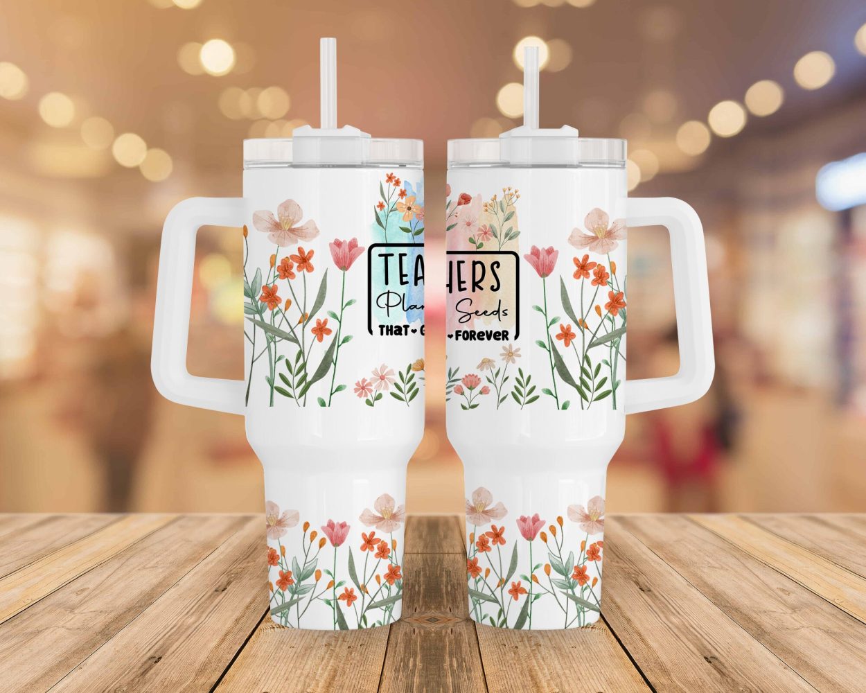 Teacher Appreciation Wildflowers Custom Stanley Quencher 40Oz Stainless Steel Tumbler With Handle