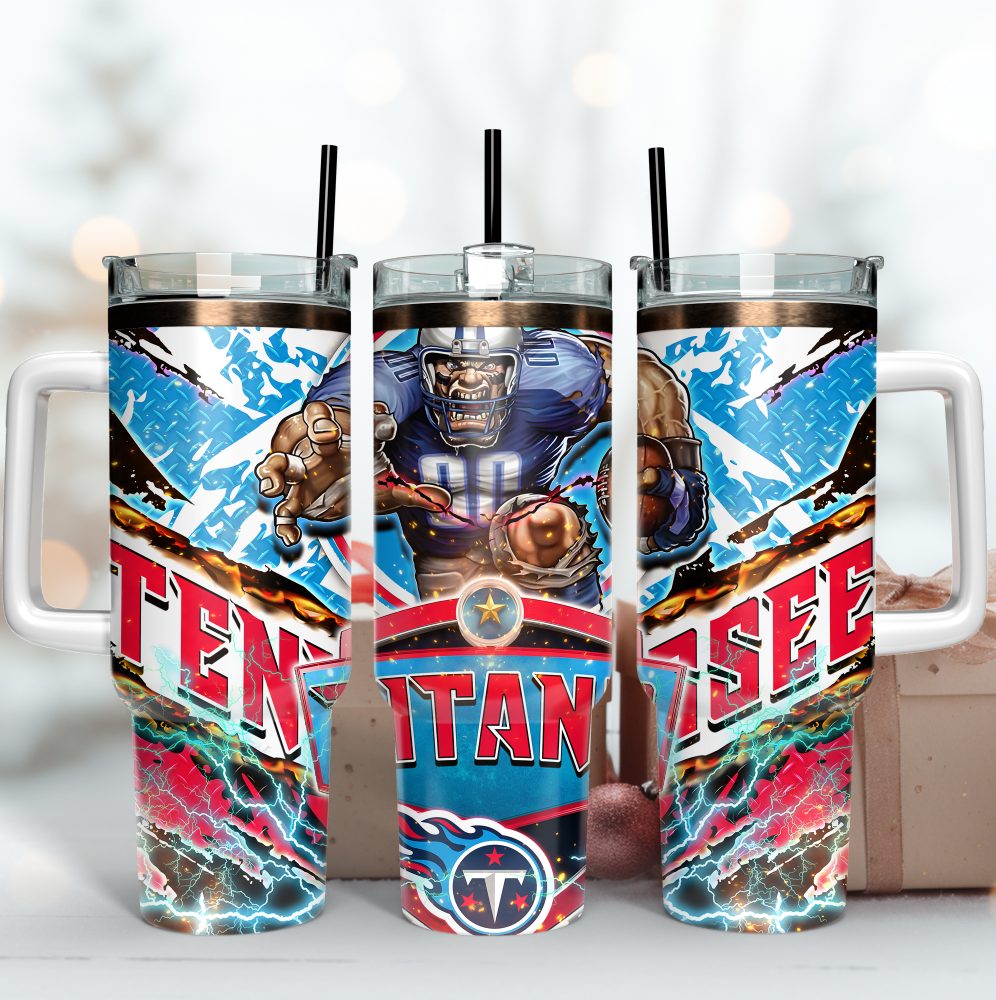 Tennessee Titans Nfl Mascot Custom Stanley Quencher 40Oz Stainless Steel Tumbler With Handle