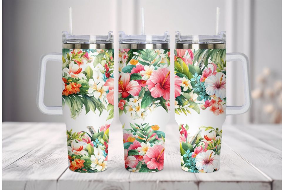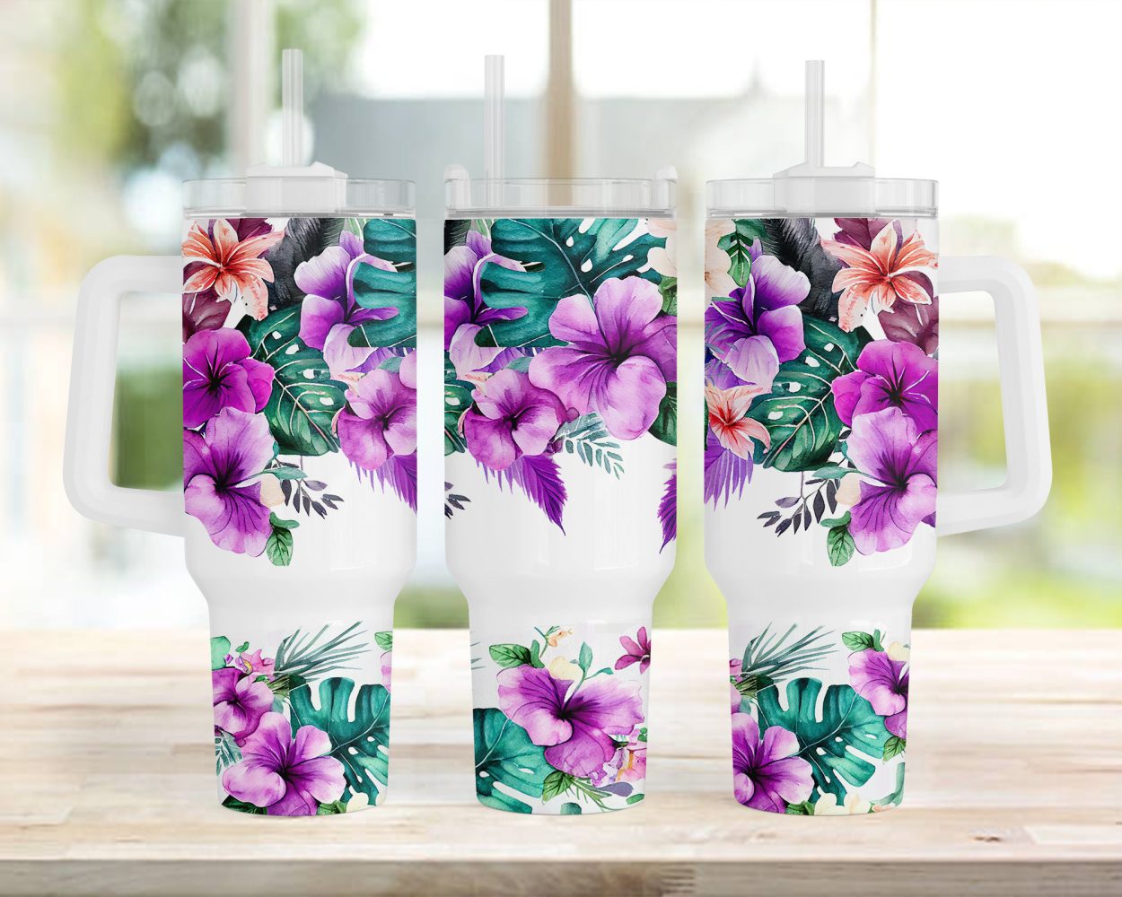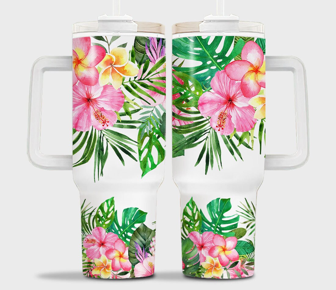 Tropical Flowers Custom Stanley Quencher 40Oz Stainless Steel Tumbler