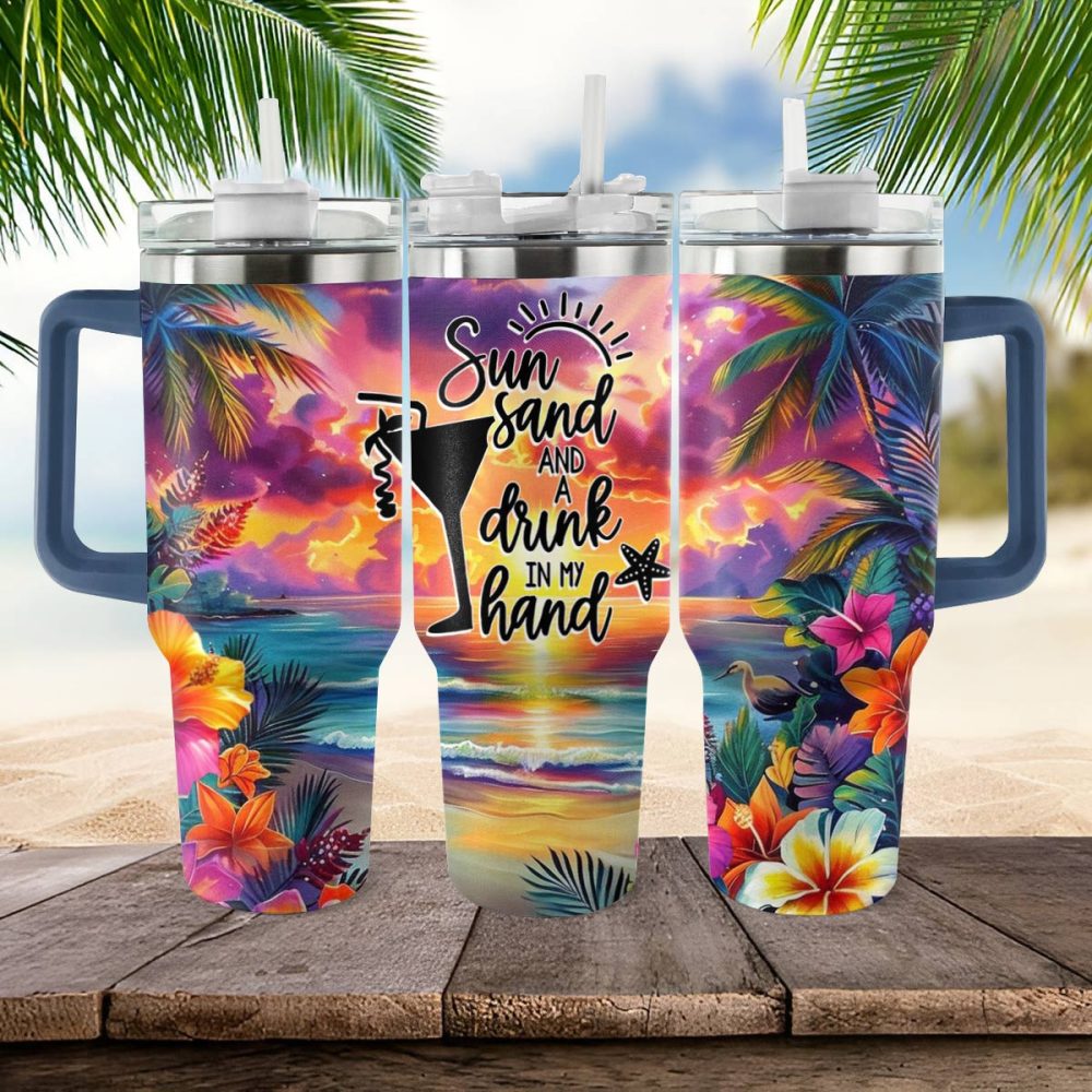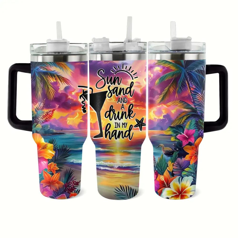 Tropical Sunset Custom Stanley Quencher 40Oz Stainless Steel Tumbler With Handle
