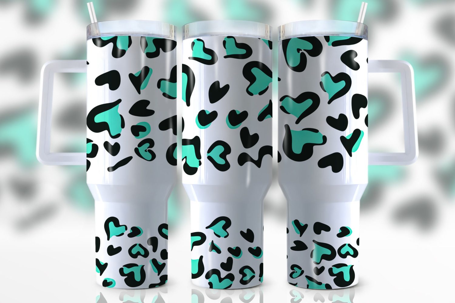 Turquoise Leopard Print Custom Stanley Quencher 40Oz Stainless Steel Tumbler With Handle