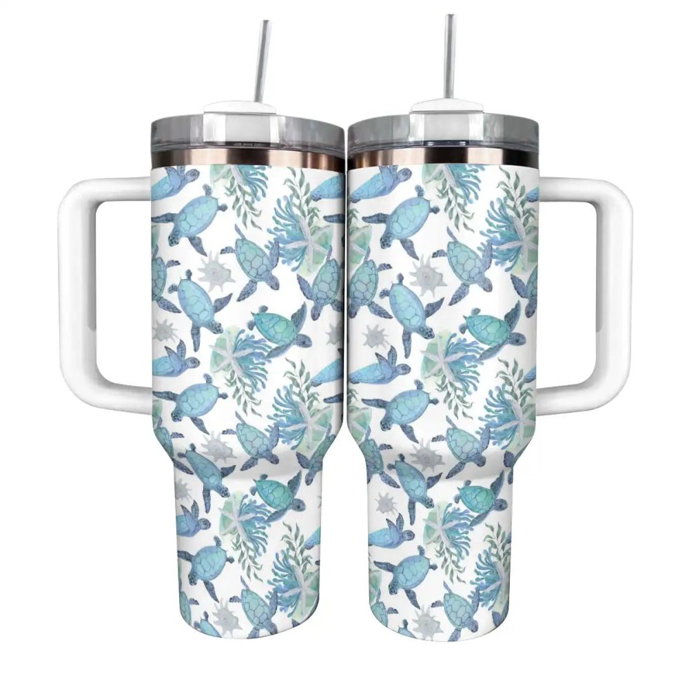 Turtle And Sea Life Custom Stanley Quencher 40Oz Stainless Steel Tumbler With Handle
