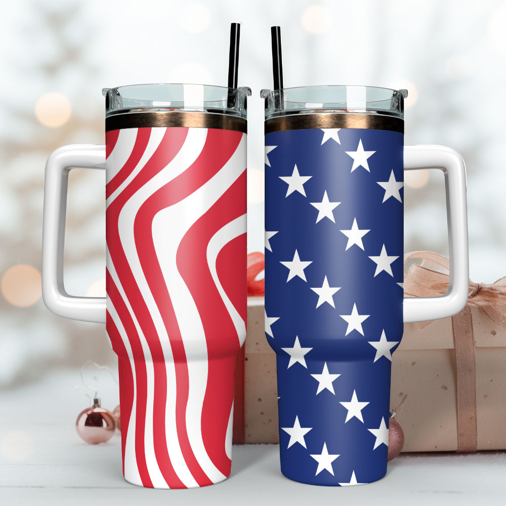 Usa Flag Artwork Custom Stanley Quencher 40Oz Stainless Steel Tumbler With Handle