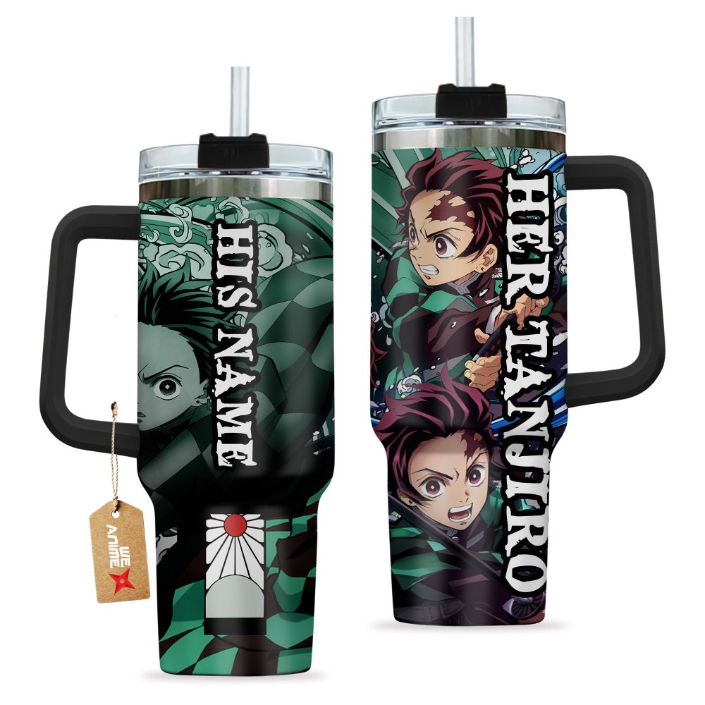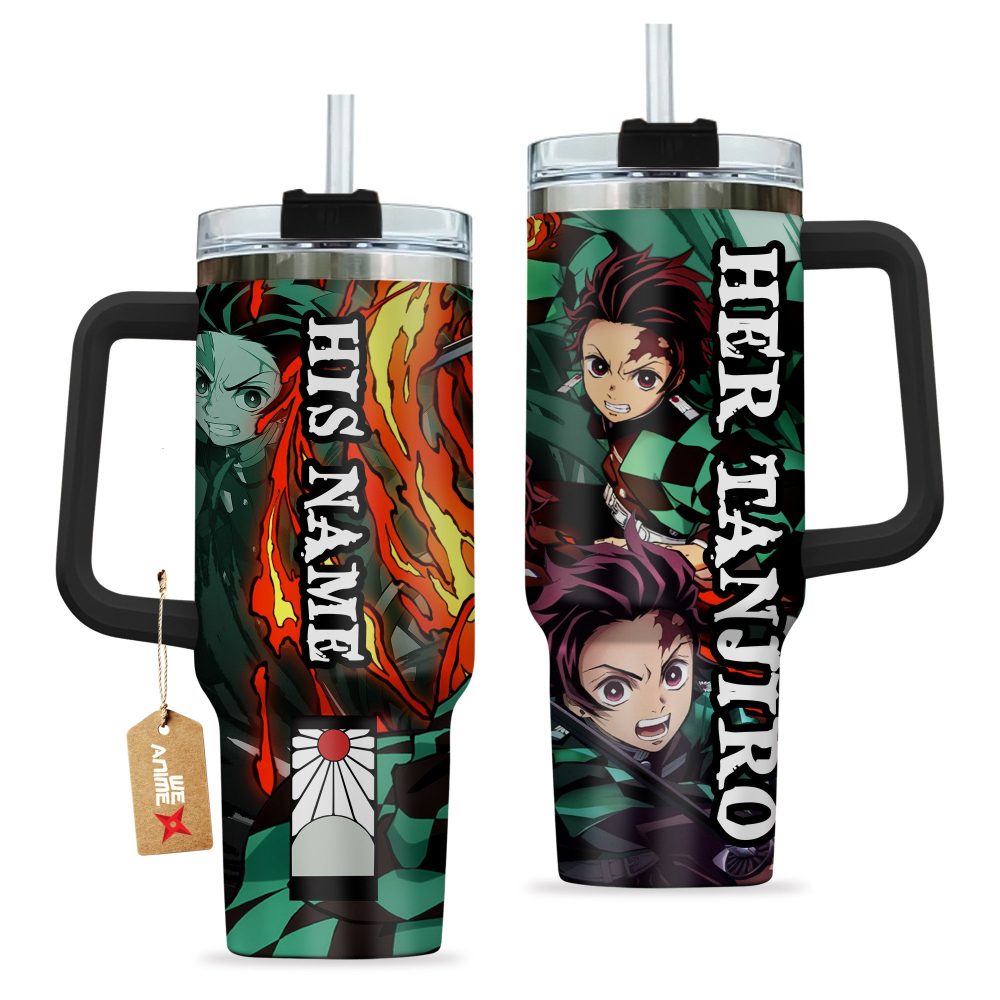 Valentine Her Tanjiro Kimetsu No Yaiba Anime Custom Stanley Quencher 40Oz Stainless Steel Tumbler With Handle