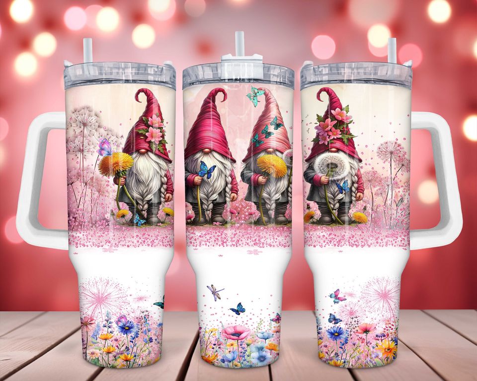 Valentine Pink Gnomes Glitter Custom Stanley Quencher 40Oz Stainless Steel Tumbler With Handle