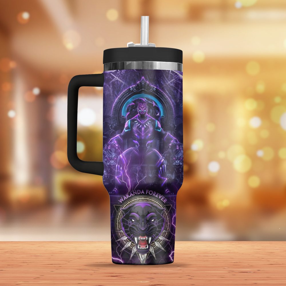 Wakanda Forever Black Panther Movies Custom Stanley Quencher 40Oz Stainless Steel Tumbler