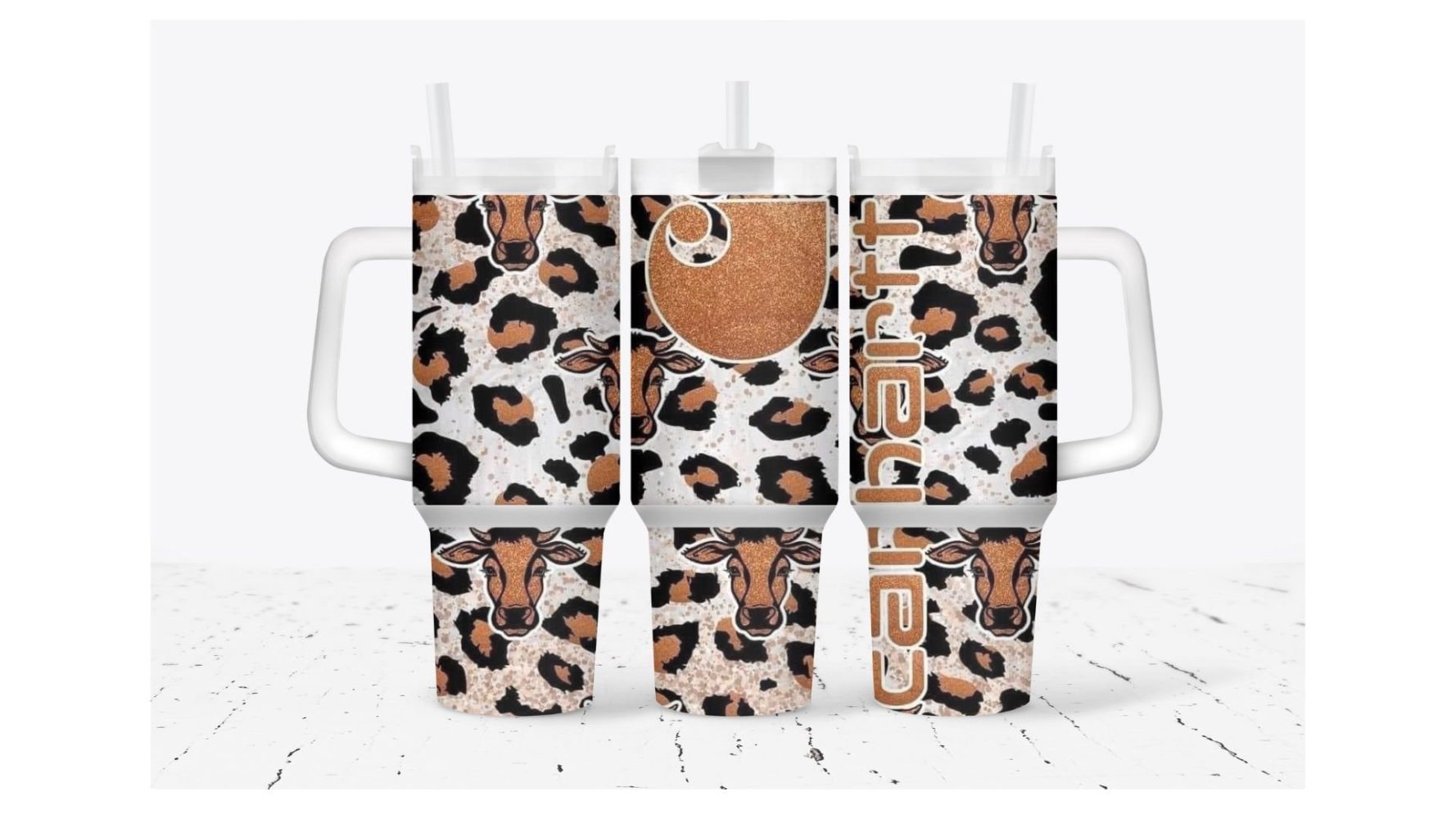 Brown Cow Print Custom Stanley Quencher 40Oz Stainless Steel Tumbler With Handle
