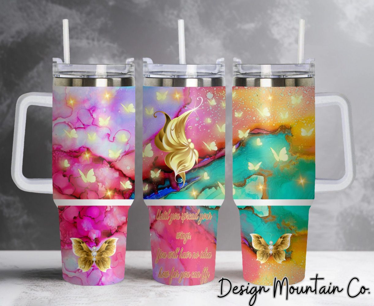 Butterfly Colorful Stanley Quencher 40Oz Stainless Steel Tumbler With Handle