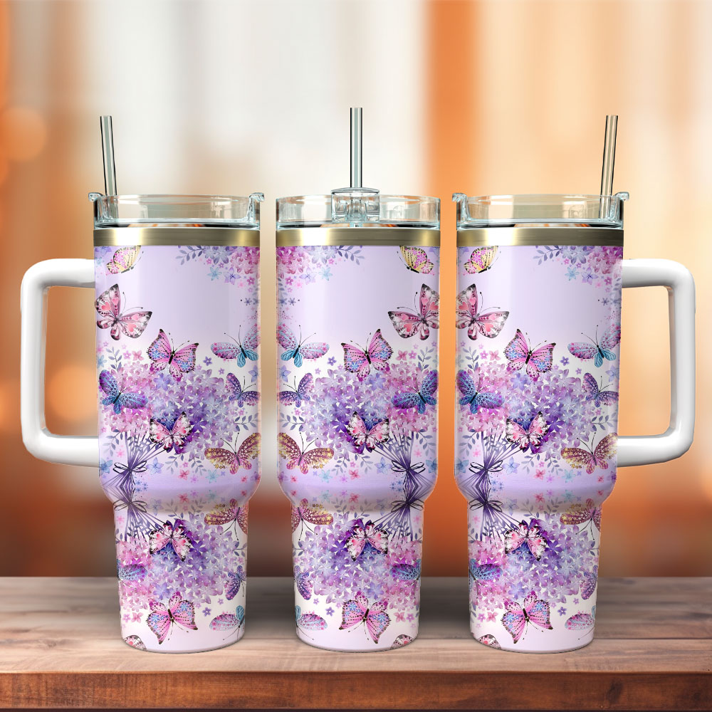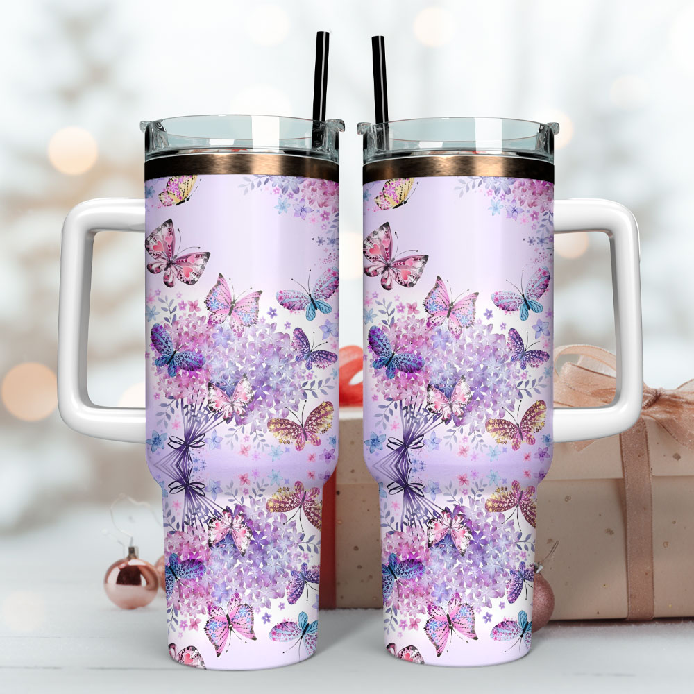 Butterfly And Floral Custom Stanley Quencher 40Oz Stainless Steel Tumbler With Handle