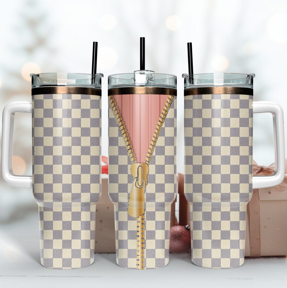 Caro Zipped Pattern Custom Stanley Quencher 40Oz Stainless Steel Tumbler With Handle