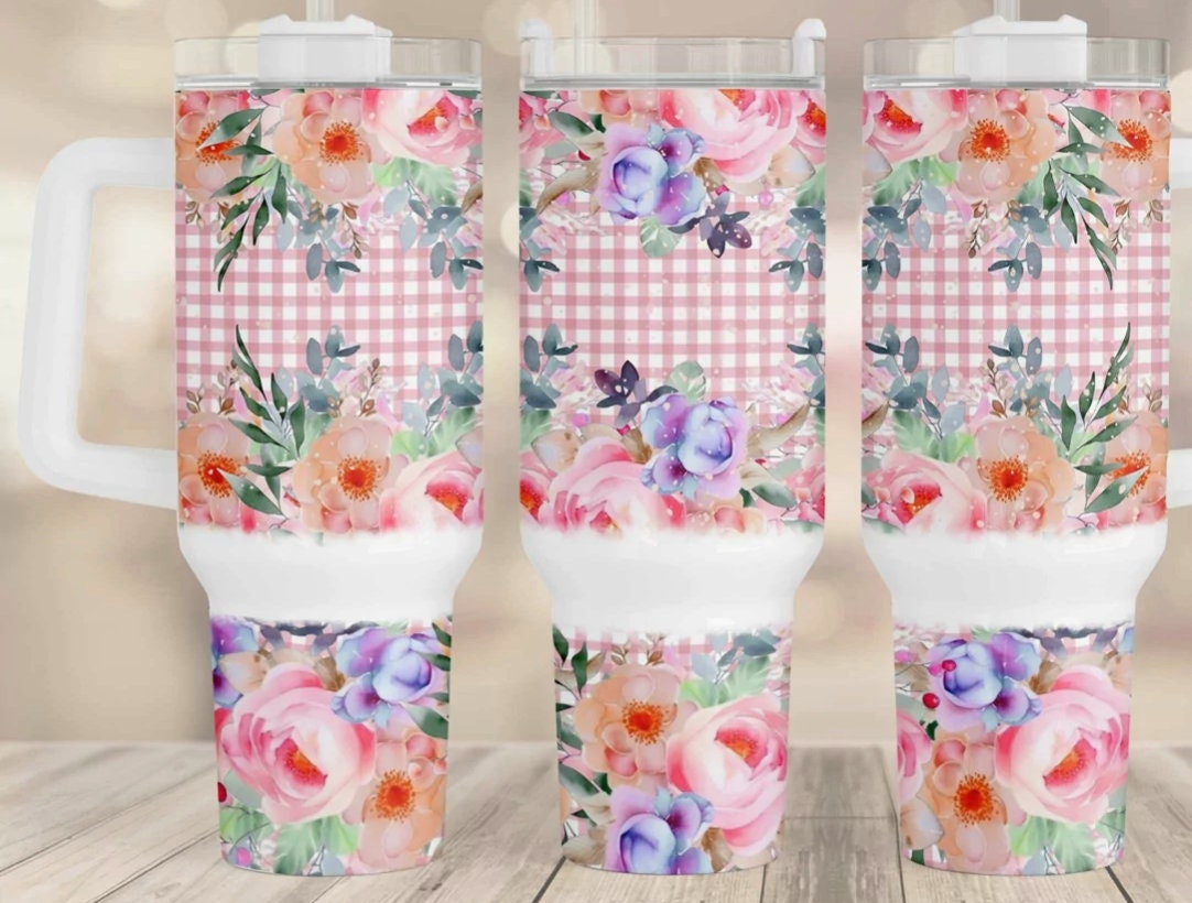 Caro Flowers Custom Stanley Quencher 40Oz Stainless Steel Tumbler With Handle