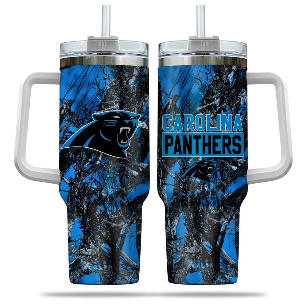 Carolina Panthers Nfl Hunting Custom Stanley Quencher 40Oz Stainless Steel Tumbler With Handle