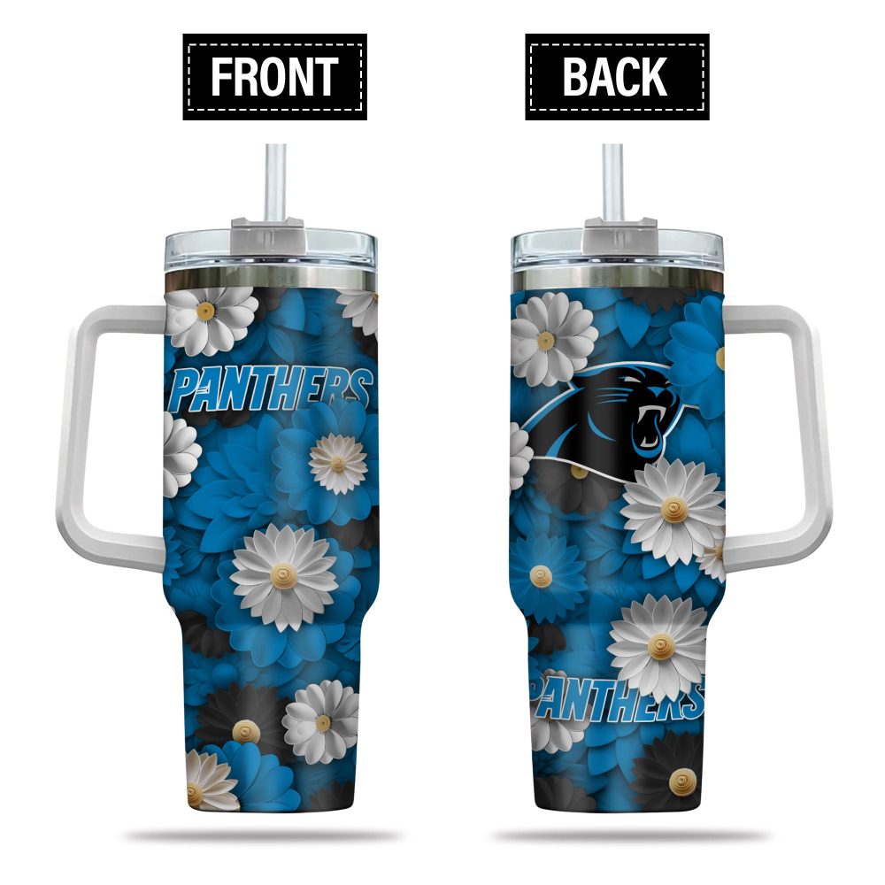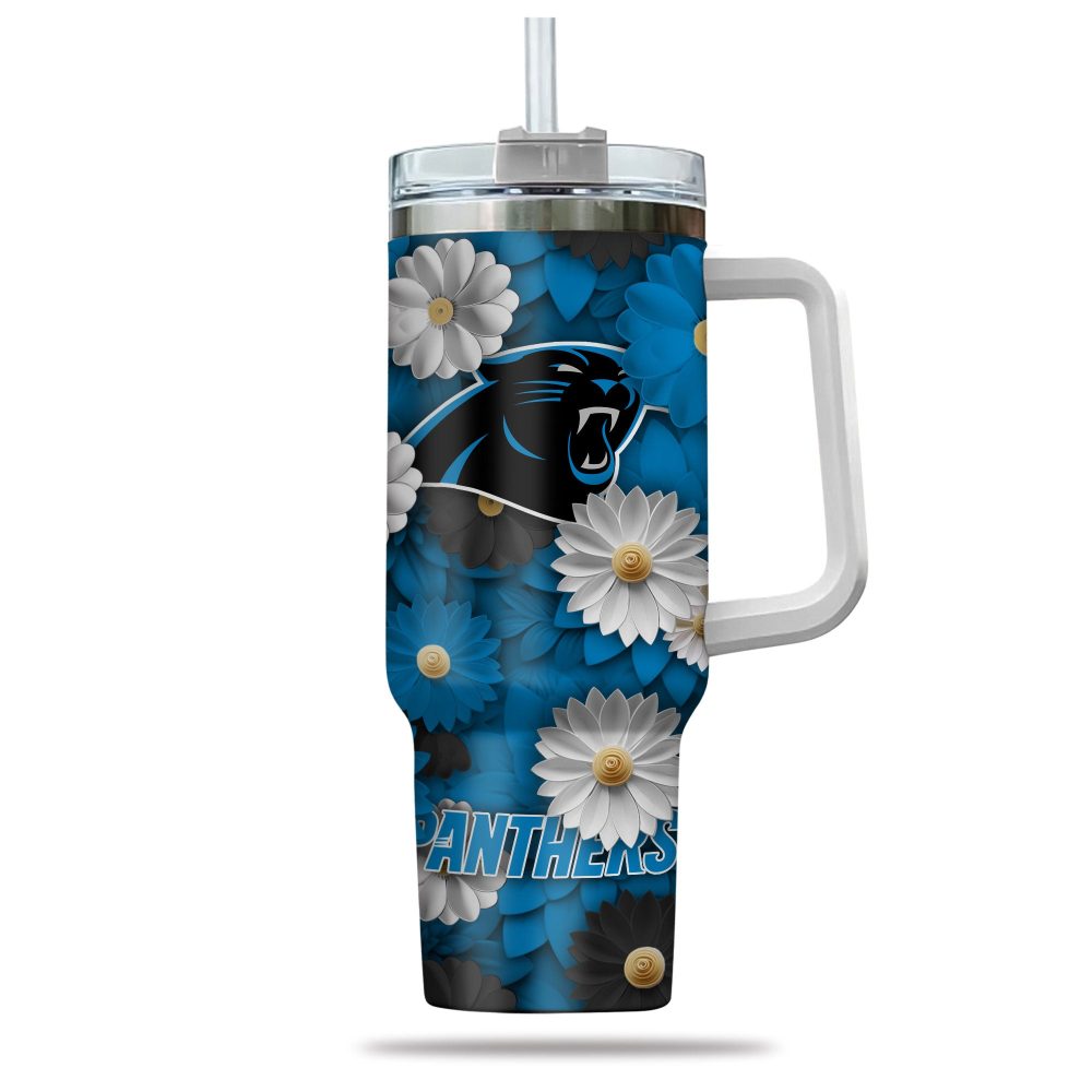 Carolina Panthers Nfl Flowers Custom Stanley Quencher 40Oz Stainless Steel Tumbler With Handle