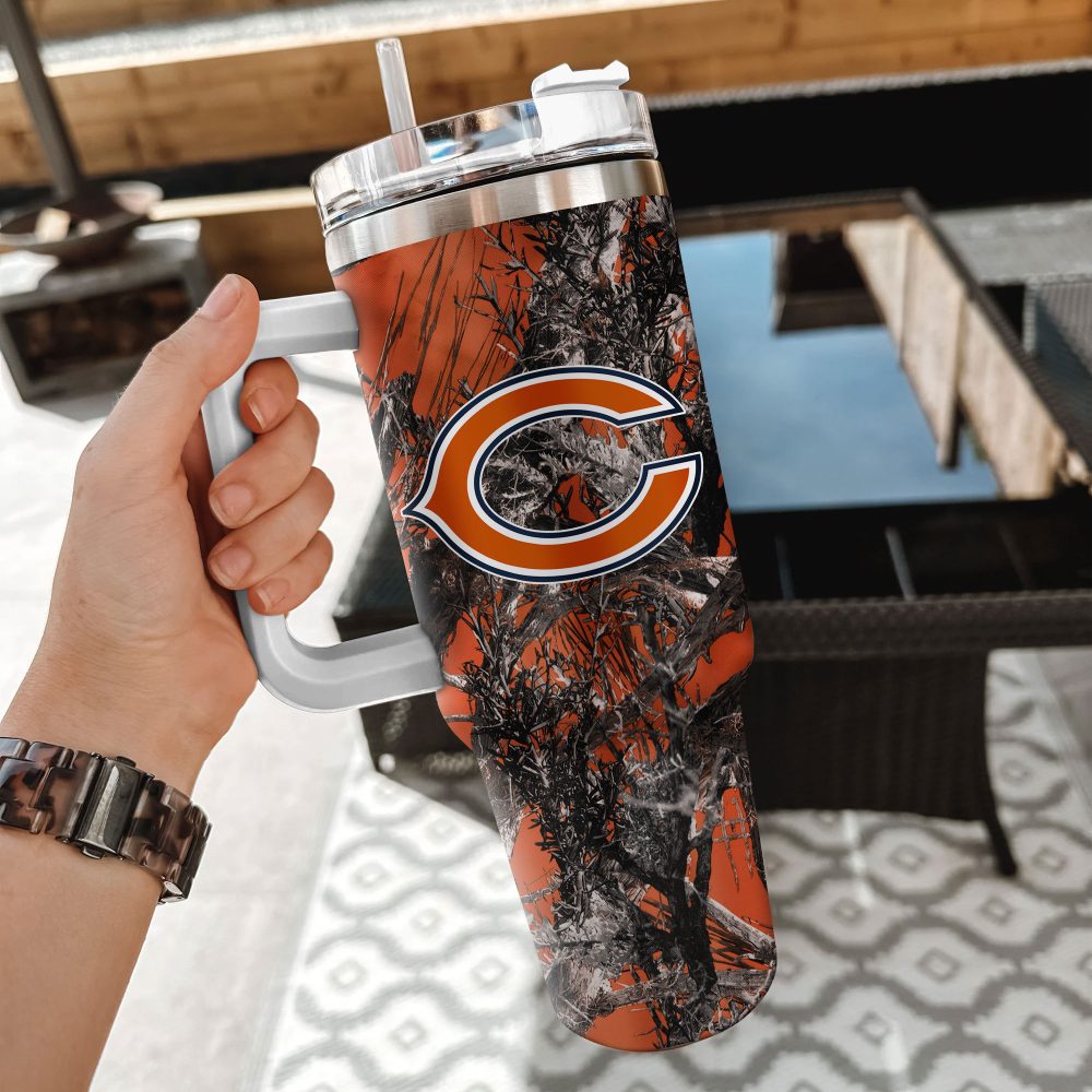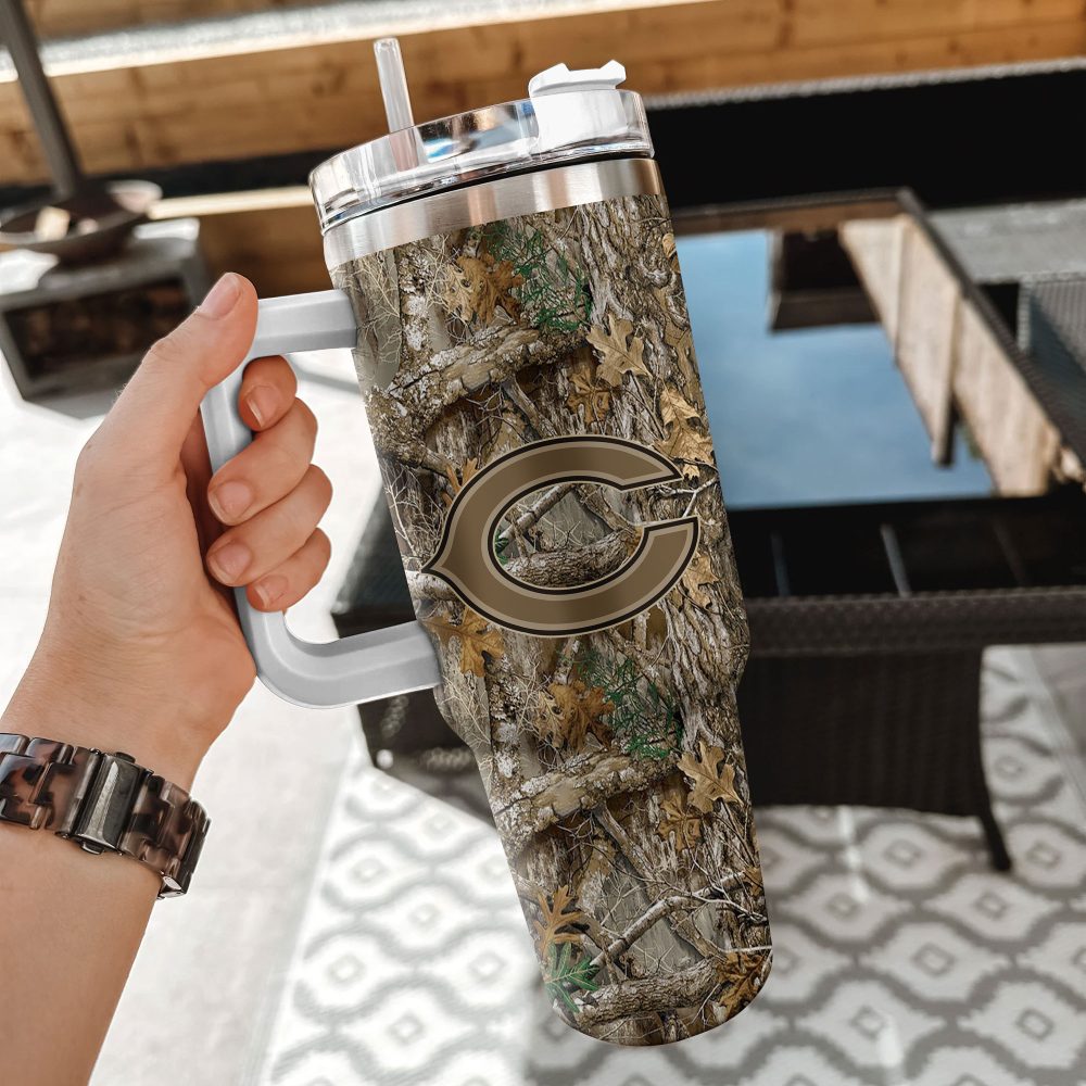 Chicago Bears Nfl Hunting Realtree Custom Stanley Quencher 40Oz Stainless Steel Tumbler With Handle