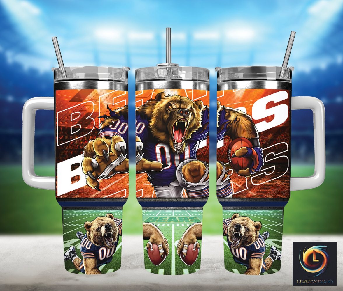Chicago Bears Nfl Mascot Custom Stanley Quencher 40Oz Stainless Steel Tumbler With Handle