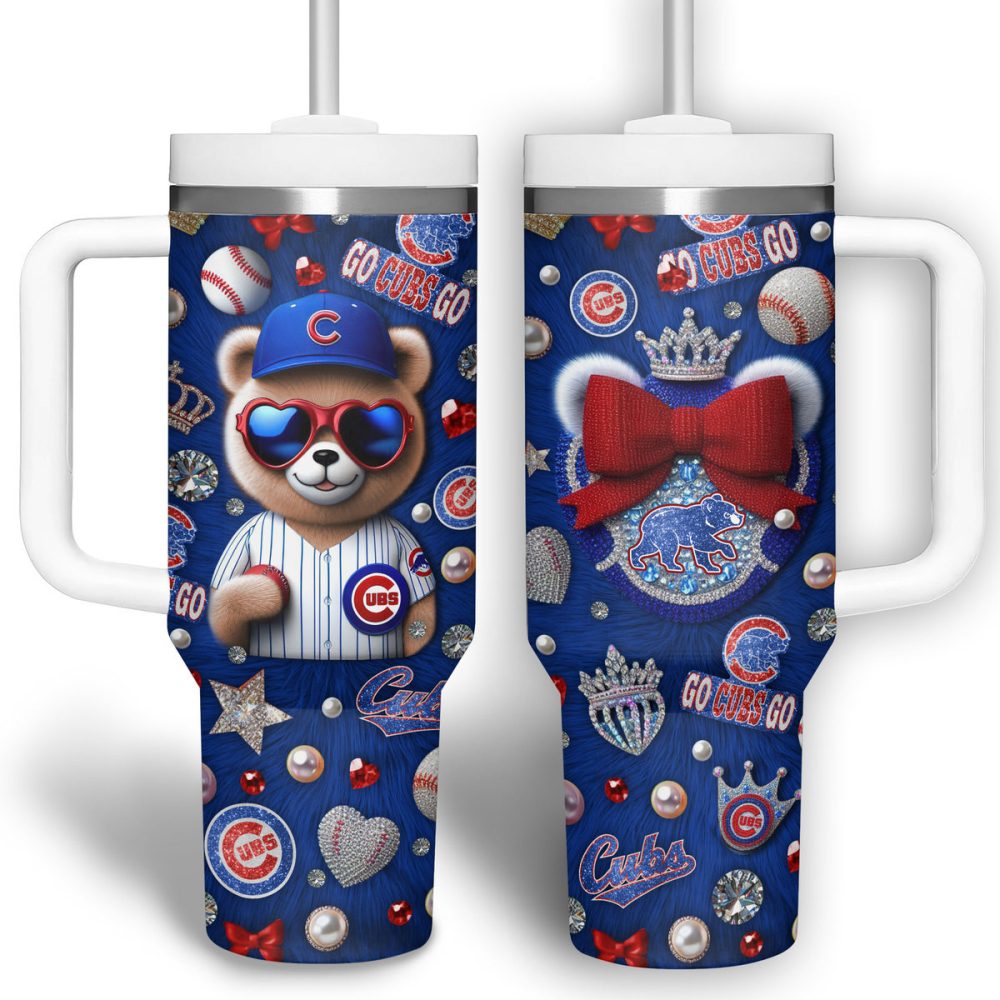 Chicago Cubs Fan Mug With Straw 40Oz Insulated Tumbler Perfect Gift For Cubs Fans