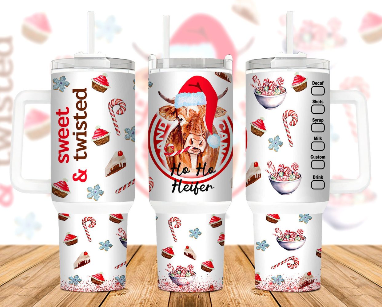 Christmas Highland Cow Candy Custom Stanley Quencher 40Oz Stainless Steel Tumbler With Handle