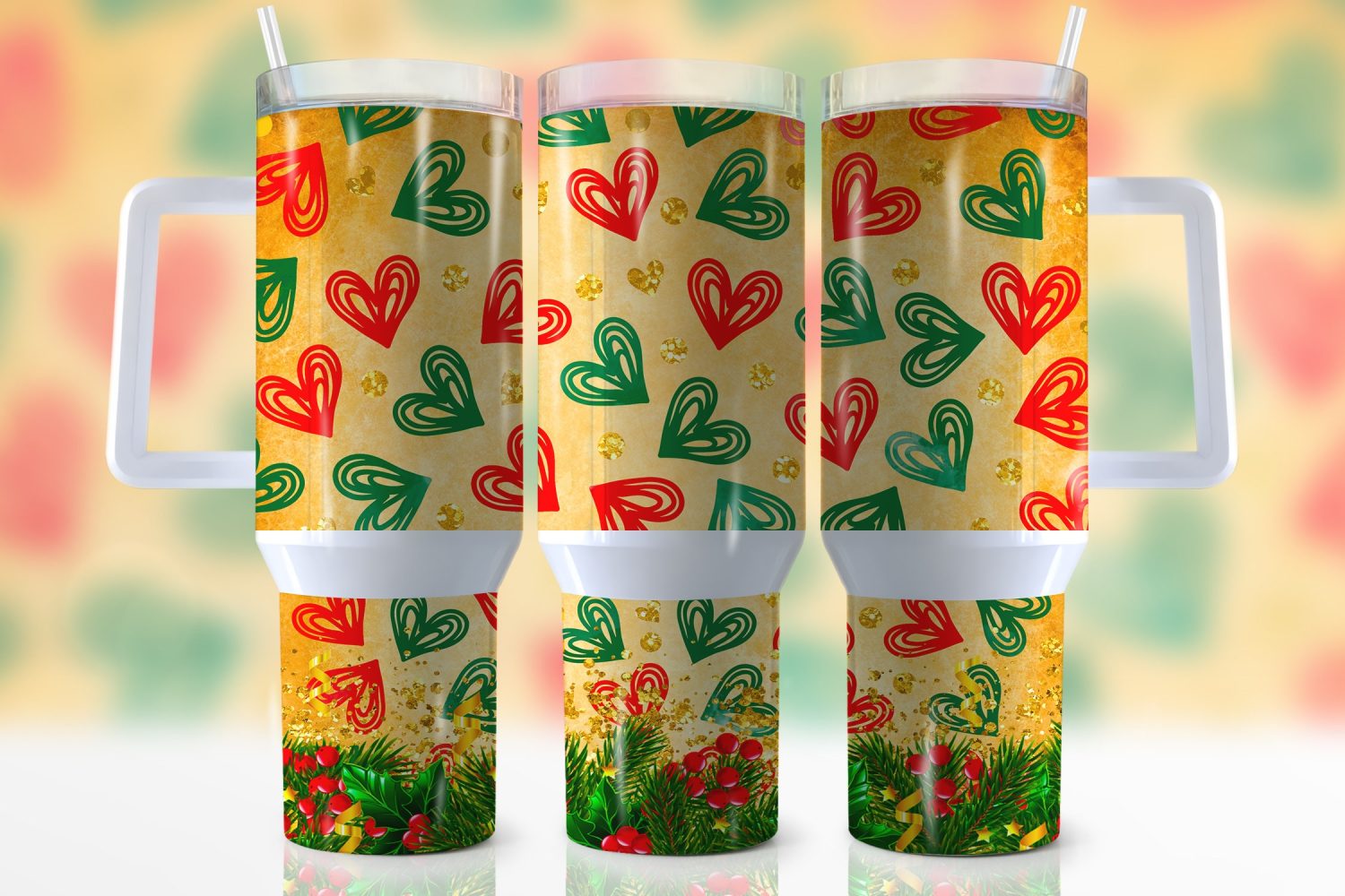 Christmas Hearts Custom Stanley Quencher 40Oz Stainless Steel Tumbler With Handle