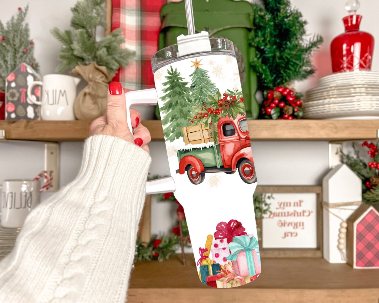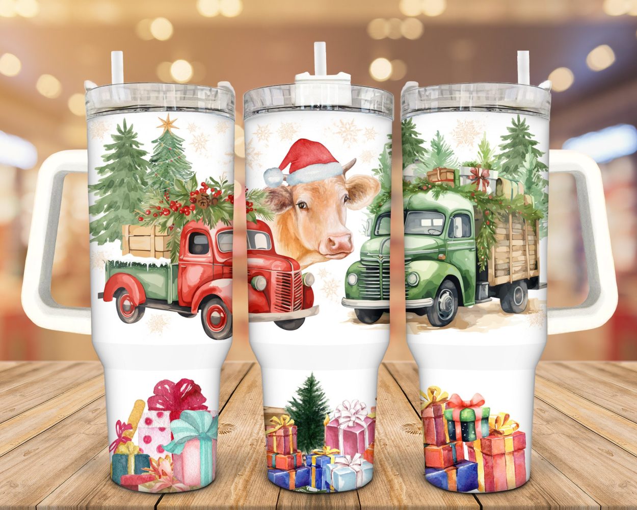 Christmas Trucks And Cow Custom Stanley Quencher 40Oz Stainless Steel Tumbler With Handle