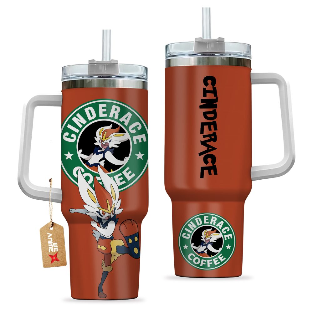 Cinderace Coffee Pokemon Anime Custom Stanley Quencher 40Oz Stainless Steel Tumbler With Handle