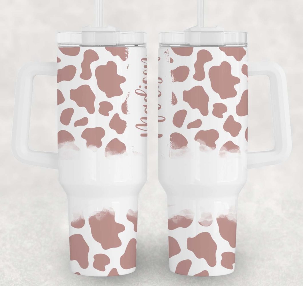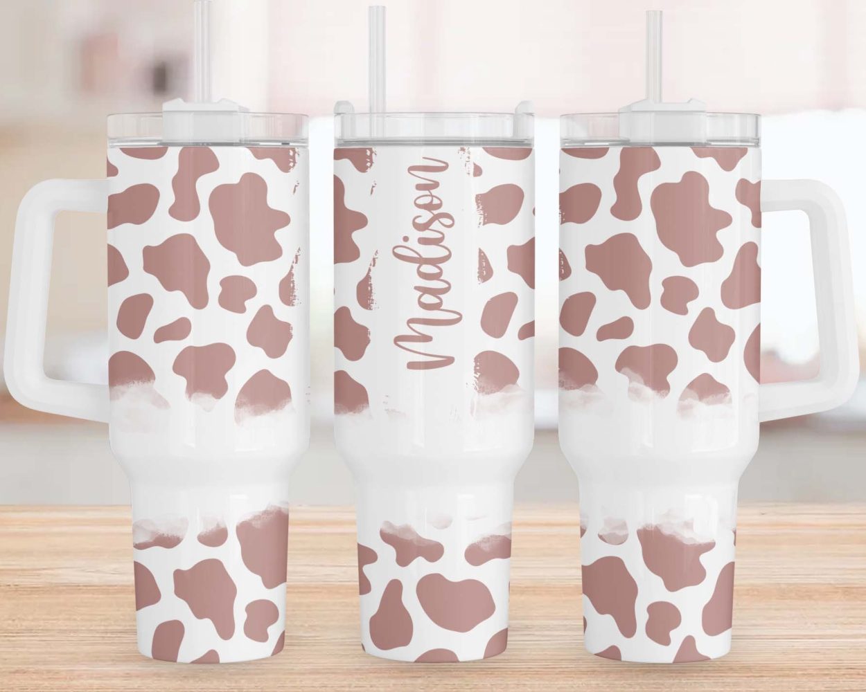 Cow Print Custom Stanley Quencher 40Oz Stainless Steel Tumbler With Handle